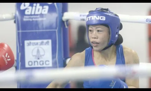 सहा वेळा वर्ल्ड चॅम्पियन ठरलेली एमसी मेरी कोम 48 किलोग्रॅम वजनगटातील पहिल्या फेरीत दुखापतग्रस्त झाली. हरियाणाची नितू या गटात अंतिम फेरीत पोहोचली. इंदिरा गांधी आंतरराष्ट्रीय स्टेडियमवर ही पात्रता स्पर्धा सुरु आहे.