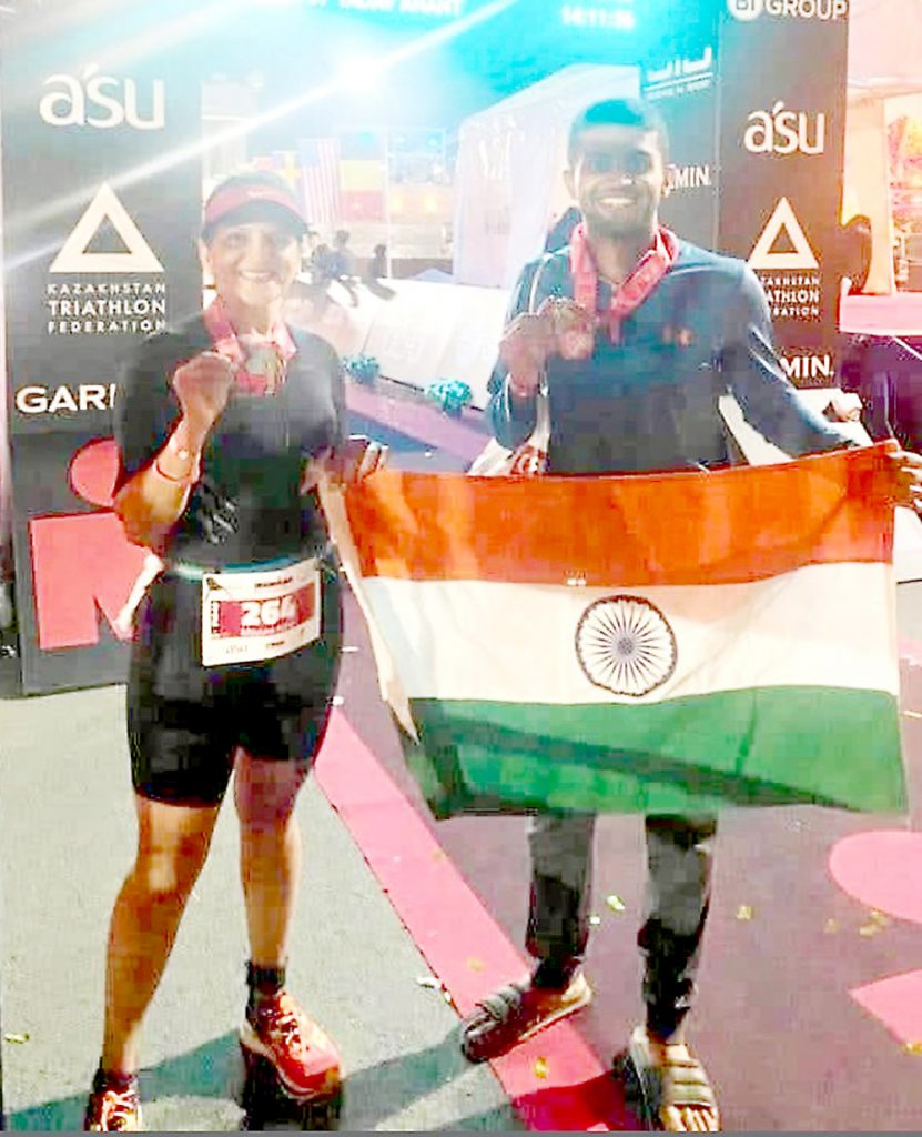 आयर्नमॅन ट्रायथलॉन स्पर्धा लांब पल्ल्याची असते. त्यामध्ये 2.4 मैल (3.86 कि. मी.), पोहणे 2.10 वेळेत, 112 मैल (180.25 कि. मी.) सायकलिंग 6.20 वेळेत पूर्ण करणे, जलतरण व सायकलिंग 10.30 वेळेत व 26.22 मैल (42.20 कि. मी.) मॅरेथॉन असे या स्पर्धेचे स्वरूप आहे. न थांबता ही स्पर्धा निर्धारित वेळेत पूर्ण करणे गरजेचे असते. आई व मुलगा स्पर्धा पूर्ण करणारे पहिले भारतीय असून, 14 ऑगस्ट रोजी कझाकस्तान येथे ही स्पर्धा घेण्यात आली.