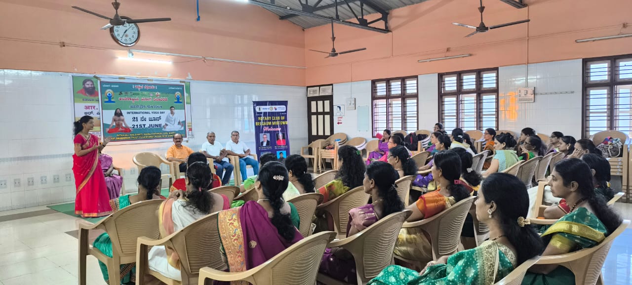 बेळगाव : रोटरी क्लब ऑफ बेळगाव मिडटाऊन व शास्त्रीनगर पतंजली योगवर्ग यांच्या संयुक्त विद्यमाने जागतिक महिला दिनाचे औचित्य साधून पाटीदार भवन येथे योग शिबिराचे आयोजन करण्यात आले होते. पहाटे 5.30 वाजता महाशिवरात्रीनिमित्त हवन करण्यात आले. या कार्यक्रमाला रोटरीच्या साहाय्यक प्रांतपाल रेणू कुलकर्णी उपस्थित होत्या. यावेळी बोलताना रेणू कुलकर्णी म्हणाल्या, सध्याच्या महिलांना नोकरी, व्यवसाय सांभाळून कुटुंबाकडे लक्ष द्यावे लागते. गृहिणी घरासोबतच मुलांचे पालनपोषण, वडीलधाऱ्यांची काळजी घेत असतात. त्यामुळे कुठल्याही पुरुषाने महिलांना कमी लेखू नये, असा सल्ला त्यांनी दिला. कार्यक्रम यशस्वी होण्यासाठी रोटरीचे अध्यक्ष सतीश नाईक, पतंजली योगवर्गाचे जोतिबा भादवणकर, मोहन बागेवाडी यांनी परिश्रम घेतले. सूत्रसंचालन अंजली किनारी यांनी केले. शोभा डोंगरे यांनी परिचय करून दिला. कल्पना रेवणकर व नमिता पाटील यांनी स्वागतगीत सादर केले. विद्या माने यांनी आभार मानले.