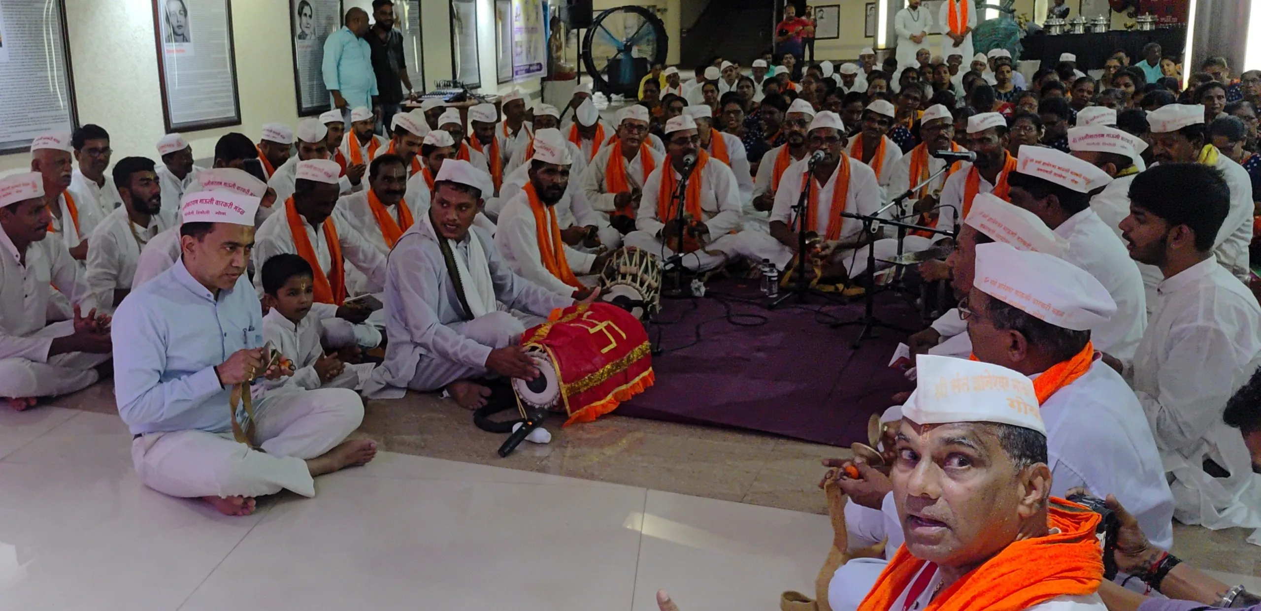 साखळीतील रवींद्र भवनमध्ये सुरू असलेल्या हरिपाठ सोहळ्यात मुख्यमंत्री रमले भजनात