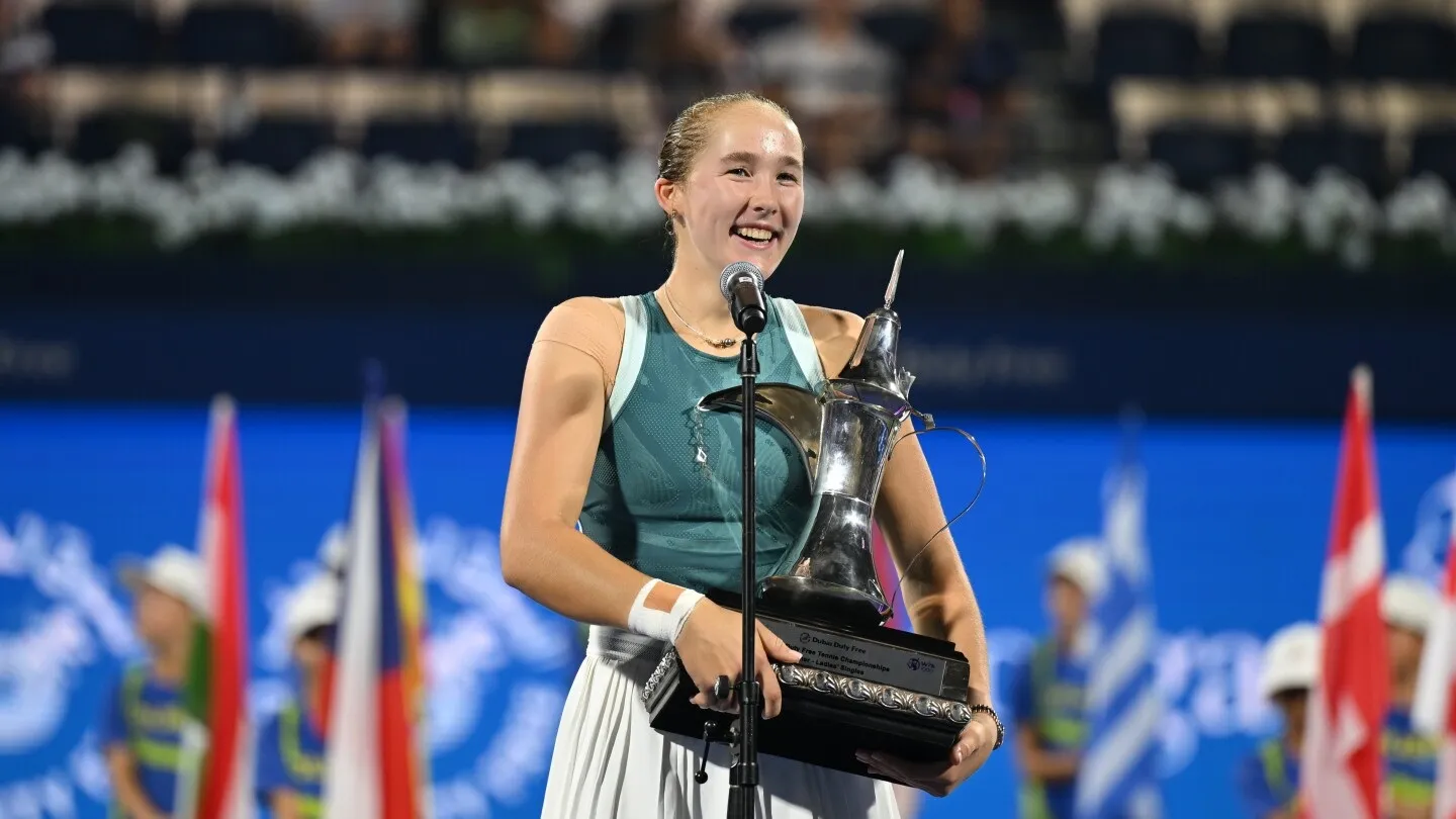 डब्ल्यूटीए टूरवरील येथे झालेल्या दुबई खुल्या आंतरराष्ट्रीय महिलांच्या टेनिस स्पर्धेत रशियाच्या 17 वर्षीय मीरा अँड्रीव्हाने एकेरीचे जेतेपद पटकाविताना क्लेरा टॉसनचा अंतिम फेरीत पराभव केला.