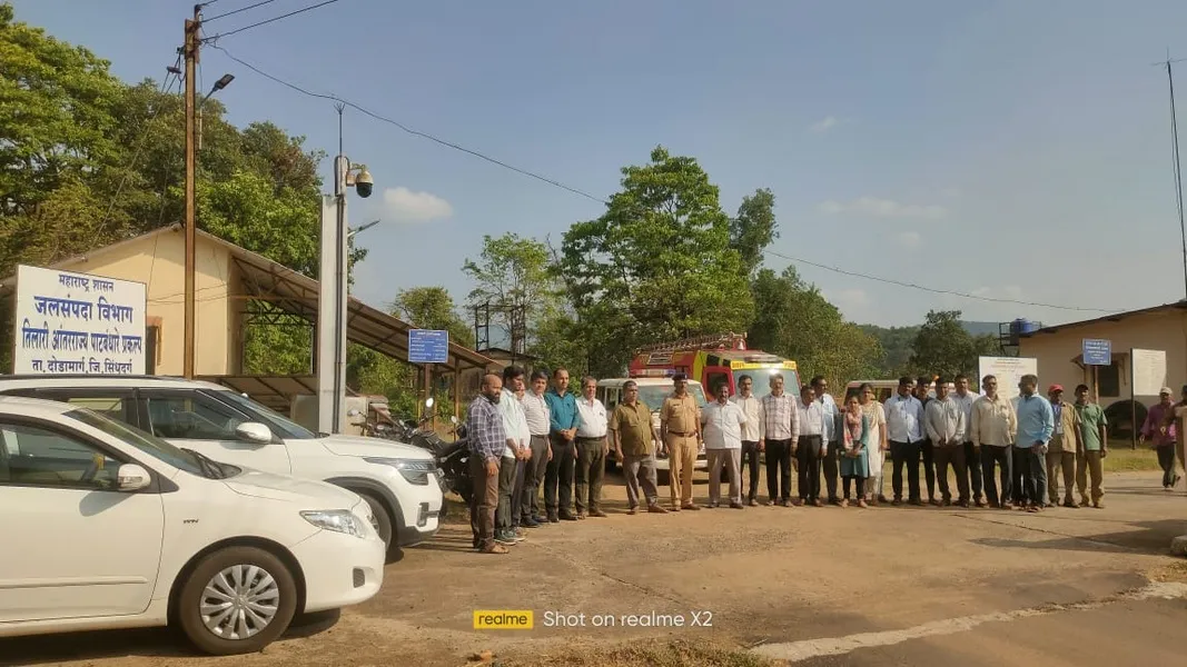 सिंधुदुर्ग जिल्ह्यात ठिकठिकाणी युद्धजन्य परिस्थितीची रंगीत तालमीच्या पार्श्वभूमीवर बुधवार 7 मे रोजी दुपारी तिलारी धरण क्षेत्रात खळग्यातील दगडी धरणावर तिलारी धरण प्रकल्प कार्यकारी अभियंता विनायक जाधव यांच्या उपस्थितीत दोडामार्ग तालुक्यातील महसूल,पोलीस प्रशासन,पाटबंधारे, अग्निशमन दल आदी प्रमुख विभागाच्या अधिकारी,कर्मचारी,पत्रकार यांच्या उपस्थितीत “मॉक ड्रिल” संपन्न झाला.यावेळी सलग दोन वेळा पंधरा मिनिटांच्या फरकाने सायरन वाजविण्यात आला.तसेच युद्धजन्य परिस्थितीची पार्श्वभूमीवर घ्यायची दक्षता,मार्गदर्शक सूचना याची चर्चा करण्यात आली. यावेळी अग्निशमन दलाचे वाहनही सज्ज ठेवण्यात आले होते.