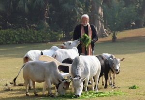 मकर संक्रांतीनिमित्त पंतप्रधान नरेंद्र मोदी यांनी आपल्या निवासस्थान आवारात गायींना चारा खाऊ घातला. पंतप्रधान मोदी मोठ्या प्रेमाने गायीला गूळ आणि गवत खाऊ घालत असल्याचे छायाचित्रांमध्ये स्पष्टपणे दिसत आहे. सोशल मीडियावर व्हायरल झालेल्या फोटोंमध्ये पंतप्रधानांच्या आजूबाजूला गायींचा कळप दिसत आहे.