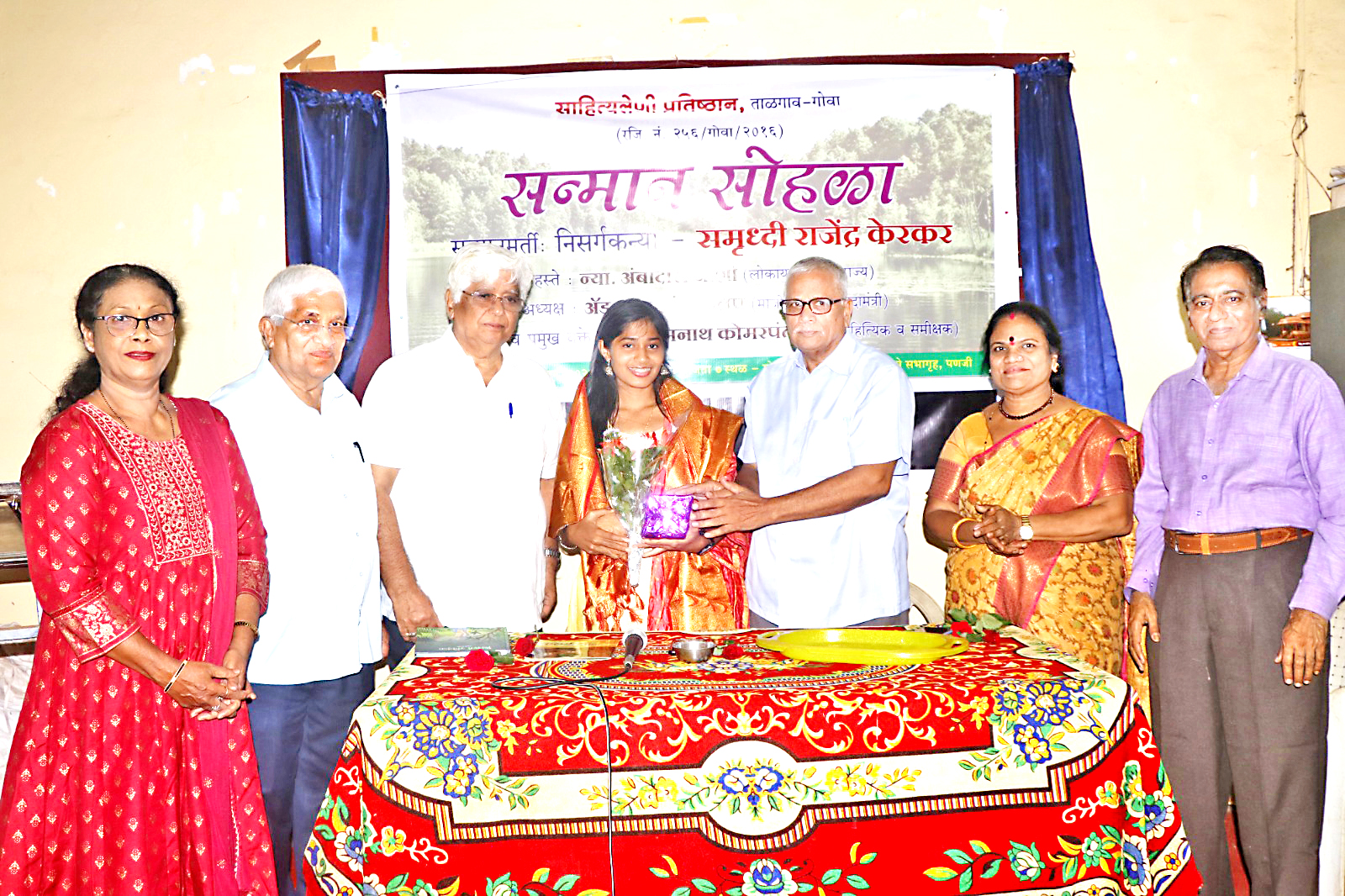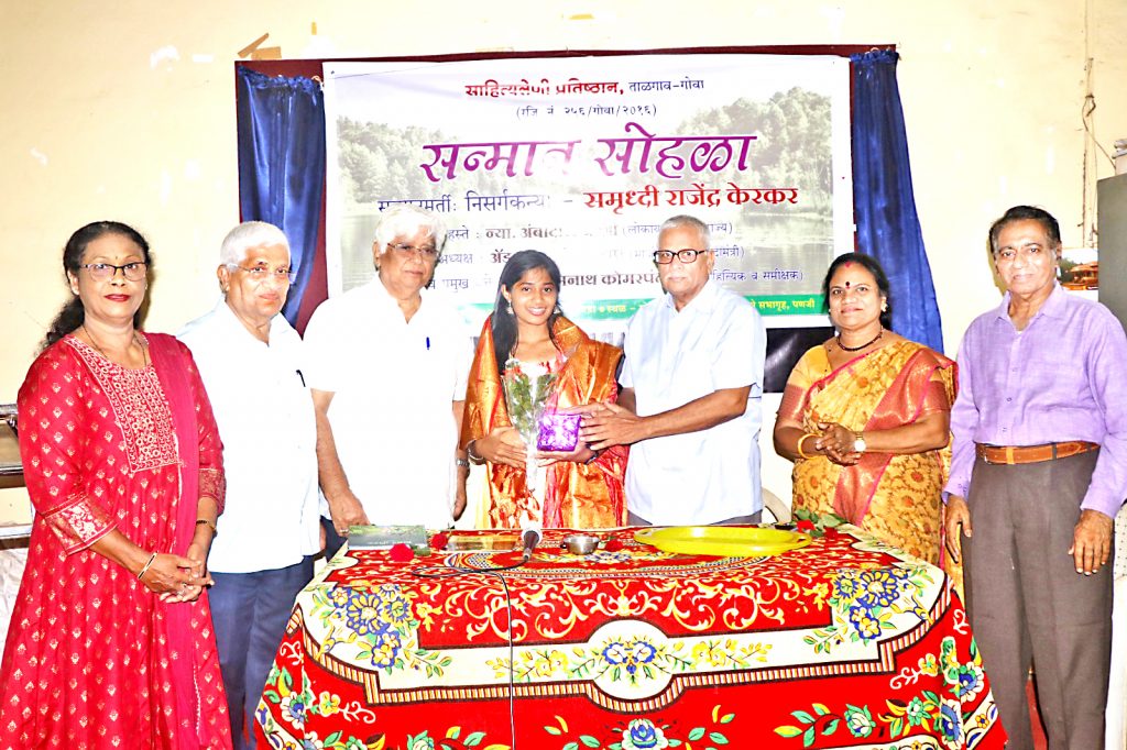 पणजी : निसर्ग तुम्हाला क्षणोक्षणी शिकवत असतो मात्र त्यासाठी डोळे आणि कान सतत उघडे ठेवायला हवेत. लेखकांनी पूर्वसंचित आणि या जन्मीची निरीक्षणे याचे अनुबंध जोडायला हवेत, असे मत लोकायुक्त न्यायमूर्ती अंबादास जोशी यांनी येथे व्यक्त केले. ’निसर्ग संवेदना’ या निसर्ग कन्या समृद्धी केरकर हिच्या पुस्तकाला साहित्य अकादमीचे द्वितीय मानांकन लाभल्याबद्दल मंगळवारी तिचा साहित्य लेणी प्रतिष्ठान ताळगाव या संस्थेतर्फे येथे सन्मान करण्यात आला त्यावेळी प्रमुख पाहुणे म्हणून न्यायमूर्ती अंबादास जोशी बोलत होते. गोसासे मंडळ सभागृहात झालेल्या या सोहळ्यात,त्यांच्या हस्ते समृद्धी केरकर हिला शाल, श्रीफळ, स्मृतिचिन्ह प्रदान करण्यात आले. व्यासपीठावर प्रमुख वत्ते सव्यसाची समीक्षक,लेखक डॉ.सोमनाथ कोमरपंत, कार्यक्रमाचे अध्यक्ष माजी केंद्रीय कायदा मंत्री ऍड रमाकांत खलप, साहित्य लेणी च्या चित्रा क्षीरसागर व प्रकाश क्षीरसागर ही मंडळी उपस्थित होती. समृद्धीचे वडील पर्यावर्णीय कार्यकर्ते तथा लेखक, राजेंद्र केरकर व आई लोकसंस्कृतीच्या अभ्यासक तथा लेखिका पौर्णिमा केरकर यांनाही यावेळी सन्मानित करण्यात आले.