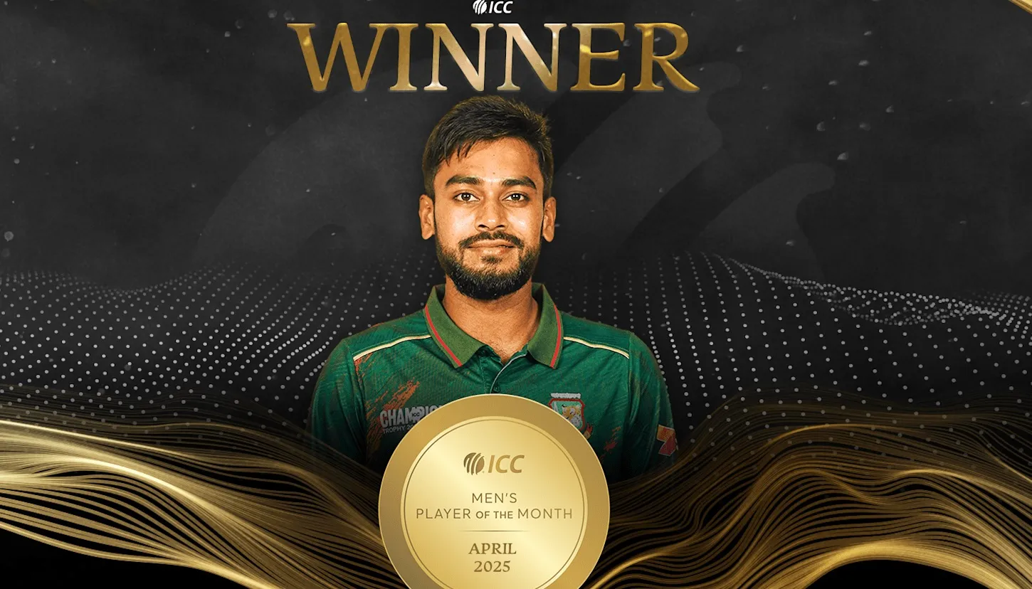 बांगलादेशचा अष्टपैलू मेहिदी हसन मिराझची एप्रिल महिन्यातील सर्वोत्तम पुरुष क्रिकेटपटू म्हणून आयसीसीने निवड केली तर महिलांमध्ये हा बहुमान स्कॉटलंडच्या कॅथरिन ब्राईसला मिळाला.