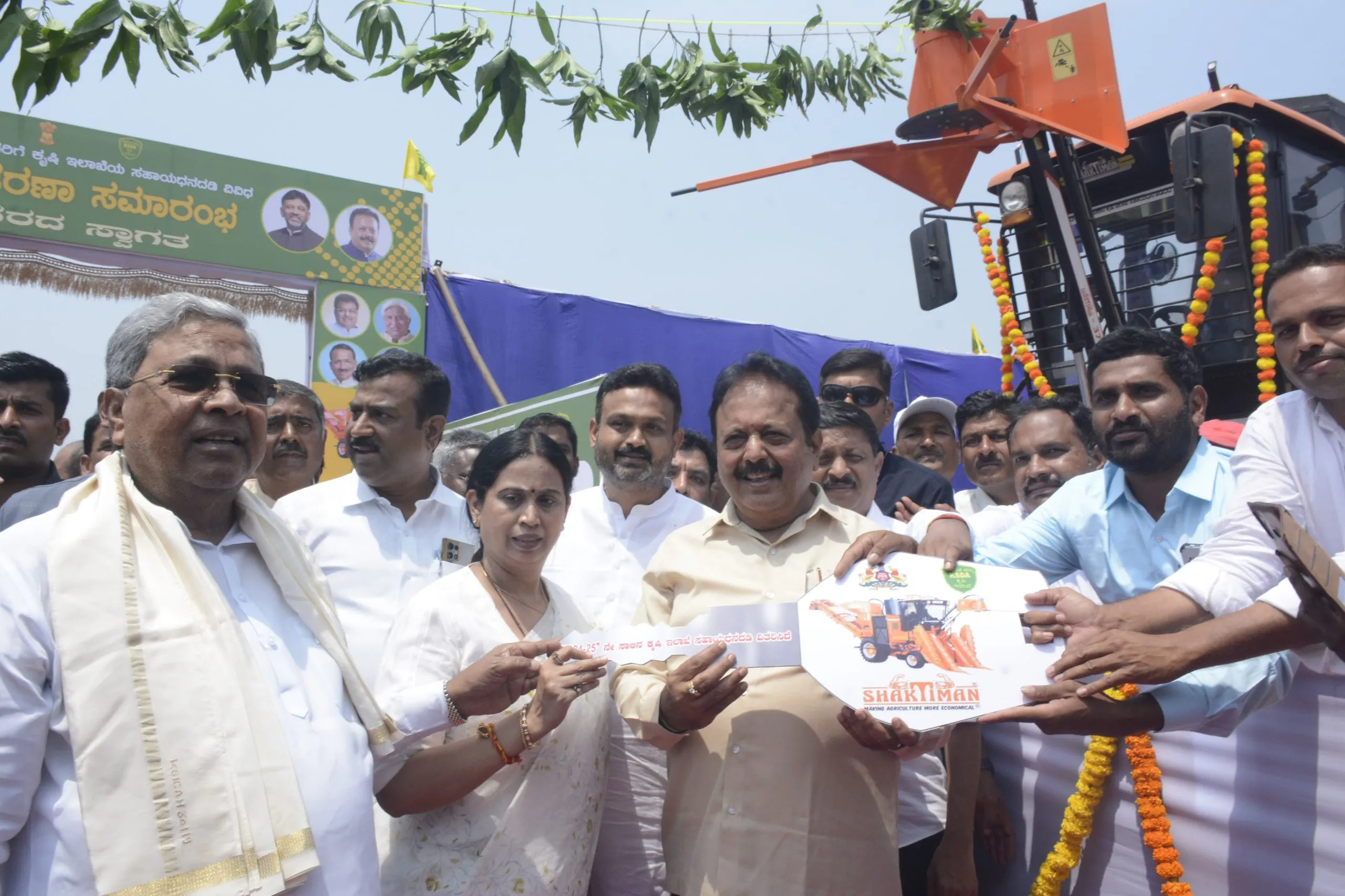 यावेळी 40 कोटी रुपयांच्या एकूण 2150 विविध कृषी अवजारांचे वाटप करण्यात आले. यामध्ये 78 ऊस तोडणी यंत्रे, 100 पॉवरट्रीलर, 165 रोटोव्हेटर, 100 चारा कटींग मशीन, 64 बी-बियाणे ड्रील, 12 माती फवारणी यंत्रे, 120 नांगर, 1480 स्प्रिंक्लर यासह इतर यंत्र सामुग्रीचा समावेश आहे. कृषीमंत्री एन. चलुवराय्या स्वामी म्हणाले, सरकारने शेतकऱ्यांसाठी विविध कार्यक्रम राबविले आहेत. विशेषत: पहिल्यांदाच सामान्य वर्गातील शेतकऱ्यांसाठी तर अनुसूचित जाती जमातीतील शेतकऱ्यांना 50 लाख रुपयांचे अनुदान अत्याधुनिक ऊस तोडणी यंत्र खरेदीसाठी देण्यात आले आहे.