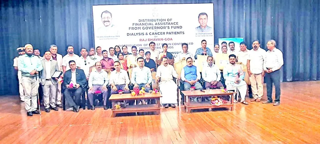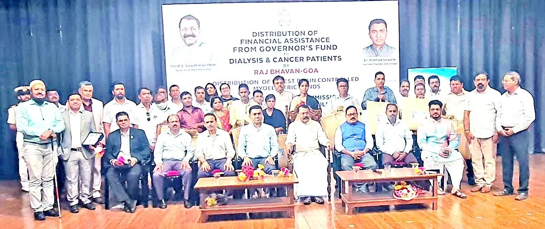 राज्यपाल निधीतून डायलॅसीस व कँसर रुग्णांना आर्थिक मदतीचे वितरण तसेच विकलांग आयोगातर्फे अपंग रुग्णांना ब्रेन कंट्रोल मायोइलेक्ट्रिक हात वितरण करण्यात आले. यावेळी राज्यपाल पी. एस. श्रीधरन पिल्लई बोलत होते. यावेळी व्यासपीठावर मुख्यमंत्री डॉ. प्रमोद सावंत, समाजकल्याण खात्याचे मंत्री सुभाष फळदेसाई, विकलांग आयोगाचे अध्यक्ष गुरुप्रसाद पावसकर, जिल्हा पंचायत सदस्य गोपाळ सुर्लकर, राज्यपालाचे सचिव एम. आर. एम. राव यांची उपस्थिती होती.