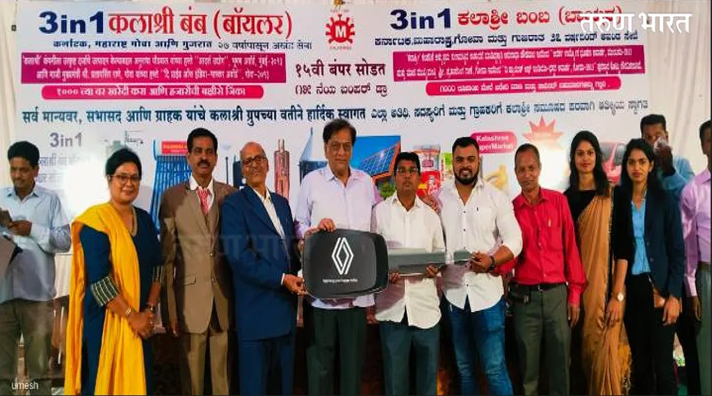 यावेळी झालेल्या कार्यकमात उपस्थीत प्रमुख अतिथी बेळगावचे नूतन महापौर सौ. शोभा सोमनाचे, स्वरूप नर्तकी सिनेमागृहाचे संचालक श्री. अविनाश पोतदार, नगरसेवक श्री.रमेश मैल्यागोळ, समाज सेवक श्री. किशोर काकडे. आयुर्विमा महामंडळ ( L I C) मुख्य कार्यकारी अधिकारी श्री. परशराम घाडी भारतीय जय भारत सोसायटीचे चेअरमन श्री. बी.आय. नेसरकर, व्यवस्थापक बँक ऑफ महाराष्ट्र टिळकवाडी श्री. सिमाॅन मासकारनेस , पैलवान श्री. अतुल शिरोळे यांच्या हस्ते सर्वानी प्रथम दिपप्रज्वलन केले व नंतर कलाश्री निर्मीत थ्री इन वन या सोलार सिस्टीमचे फीत कापून उद्घाटन केले . यावेळी या सर्वांचा भेट वस्तू व पुष्प देऊन कलाश्रीचे संचालक श्री. प्रकाश डोळेकर यांनी सत्कार केला. प्रमुख अतिथीनी आपले मनोगते व्यक्त करताना कलाश्री उद्योग समुहाने केलेली प्रगती व सामाजिक बांधिलकी यांबद्दल गौरव करून, पुढील कार्यास शुभेच्छा दिल्या .त्यानंतर कार्यक्रमास वेळेत उपस्थित असलेले इतर भाग्यवान सभासद श्री.संतोष वरगे (केदनुर), सौ. विद्या पाटील (नेहरू नगर), सौ. प्रियंका नाकाडी (बिडी), सौ.विठ्ठल सांबरेकर (अनगोळ), श्री. नागप्पा कोंदूस्कोप (बसरिकट्टी) सौ. रेश्मा मासेकर (हिंदवाडी), पूजा मंडेकर (शिंदोळी ), श्री. बसवराज तोटड, पी. वाय. लोहार (राजाराम नगर), सौ. रेणुका खेमनालकर (कर्ले) यांचा पाहुण्याच्या हस्ते भेट वस्तू देऊन सत्कार करण्यात आला. तसेच कलाश्री बंब व स्टील फर्निचरच्या वतीने गेल्या दोन महिन्यातील रू. एक हजाराच्या किराणा खरेदीवरील कूपनची सोडत काढण्यात आली, त्यामधील पांच भाग्यवान विजेते श्री.पांडुरंग पाटील, श्री आप्पया डोळेकर, श्री. आनंद जी पाटील, एस.के. मिर्जे, श्री. आनंद हिरेमठ याना अनुकमे रु 5001/ 2501 / , 2001 / , 15O1 / , 1001 / चे वाऊचर देऊन सत्कार करण्यात आले. शेवटी अविनाश पोतदार यांनी उपस्थित सर्व ग्राहकांसमोर 15 व्या भाग्यवान विजेत्याची चिठ्ठी काढून रेश्मा शहापूरकर यांचे नाव घोषित केले व त्यांना गाडीची चावी सुपूर्त करून अभिनंदन केले . कार्यक्रमाचे सूत्रसंचालन टी.डी पाटील यांनी तर आभार सुकन्या डोळेकर यांनी मानले .