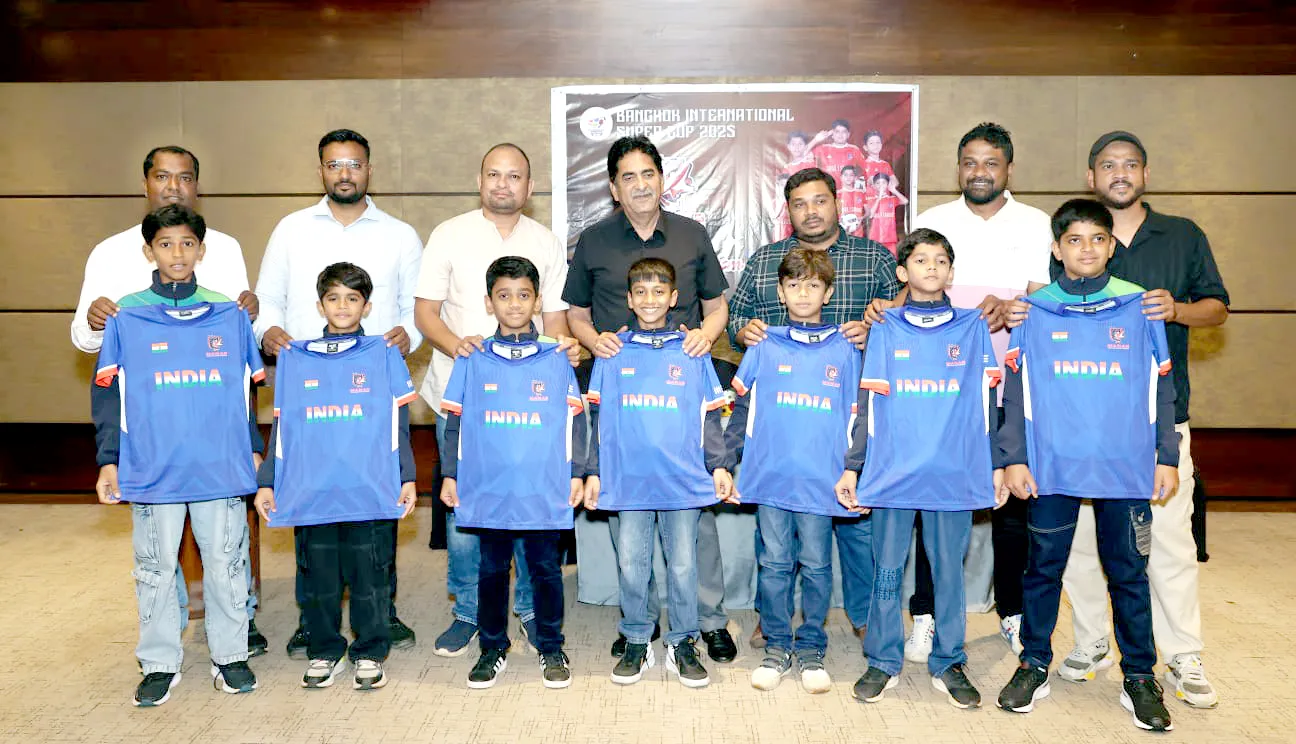 बेळगाव : बँकॉक इंटरनॅशनल फुटबॉल स्पर्धा सुपर कप-2025 या स्पर्धेत सहभागी होण्यासाठी रवाना होणाऱ्या बेळगाव शहरातील मानस स्पोर्ट्स डेव्हलपमेंट फाउंडेशनच्या (एमएसडीएफ) संघातील खेळाडूंना जर्सी वितरणासह शुभेच्छा देण्याचा कार्यक्रम नुकताच उत्साहात पार पडला. शहरातील एका तारांकित हॉटेलमध्ये गेल्या मंगळवारी आयोजित सदर कार्यक्रमाला प्रमुख पाहुणे म्हणून बेळगाव उत्तरचे आमदार असिफ (राजू) सेठ उपस्थित होते. आमदारांच्या हस्ते बँकॉक इंटरनॅशनल सुपर कप-2025 या स्पर्धेत सहभागी होण्यासाठी रवाना होणाऱ्या एमएसडीएफ संघातील खेळाडूंना जर्सी वितरण करण्यात आले. आमदार सेठ यांनी स्पर्धेमध्ये जय-पराजय ही महत्त्वाची असतेच. परंतु त्याहीपेक्षा स्पर्धेत भाग घेणे आणि पूर्ण क्षमतेने आपल्या कौशल्याचे प्रदर्शन करणे हे जास्त महत्त्वाचे असते असे सांगून एमएसडीएफ संघाला स्पर्धा जिंकून या, अशा शुभेच्छा दिल्या. यावेळी अन्य मान्यवरांसह खेळाडूंनी देखील आपले मनोगत व्यक्त केले. बँकॉक इंटरनॅशनल सुपर चषक स्पर्धेत सहभागी होणाऱ्या एमएसडीएफ बेळगाव संघामध्ये हसन जमादार (कर्णधार), आराध्या नाकाडी, रायन सईद, समर्थ हिरेमठ, चैतन्य नाईक, धनसक, वंश पडवळेकर, अर्थीट, हुसेन जमादार व फहसूय (गोलरक्षक) त्यांचा समावेश आहे. या खेळाडूंच्या जर्सी वितरण कार्यक्रमाप्रसंगी मानस स्पोर्ट्सचे पदाधिकारी, सदस्य उपस्थित होते.