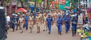 श्री विसर्जन मिरवणुकीच्या पूर्वसंध्येला शहरातील प्रमुख मार्गांवरून पोलिसांनी पथसंचलन करत शक्तिप्रदर्शन केले. कायदा-सुव्यवस्था परिस्थितीला धक्का पोहोचविण्याचा प्रयत्न करणाऱ्यांची गय केली जाणार नाही, असा इशारा पोलीस आयुक्तांनी दिला आहे. बुधवारी सायंकाळी पोलीस आयुक्त एस. एन. सिद्धरामप्पा, कायदा व सुव्यवस्था विभागाचे पोलीस उपायुक्त रोहन जगदीश, गुन्हे तपास व वाहतूक विभागाच्या पोलीस उपायुक्त पी. व्ही. स्नेहा आदी वरिष्ठ अधिकाऱ्यांच्या उपस्थितीत पथसंचलन झाले. राणी कित्तूर चन्नम्मा चौकापासून पथसंचलनाला सुरुवात करण्यात आली.