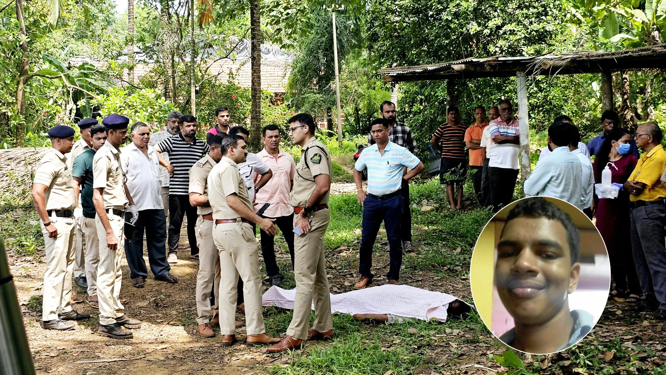 नगरगाव आंबेडे येथील श्रीहनुमान मंदिराच्या परिसरापासून जवळपास 100 मीटर अंतरावर देविदास बर्वे यांचे घर आहे. घराच्या सभोवताली बागायत आहे. मंगळवारी सकाळी 9 वाजण्याच्या सुमारास श्रवण बर्वे यांचा मृतदेह घराच्या अंगणामध्ये त्याच्या वडिलांनी पाहिला. त्यांनीच याबाबतची माहिती वाळपई पोलिसांना दिली. पोलिस निरीक्षक विदेश शिरोडकर, तपास अधिकारी सनिशा नाईक व इतर पोलिस घटनास्थळी दाखल झाले. पंचनामाच्या दरम्यान अनेक संशयास्पद गोष्टी आढळून आलेल्या आहेत.