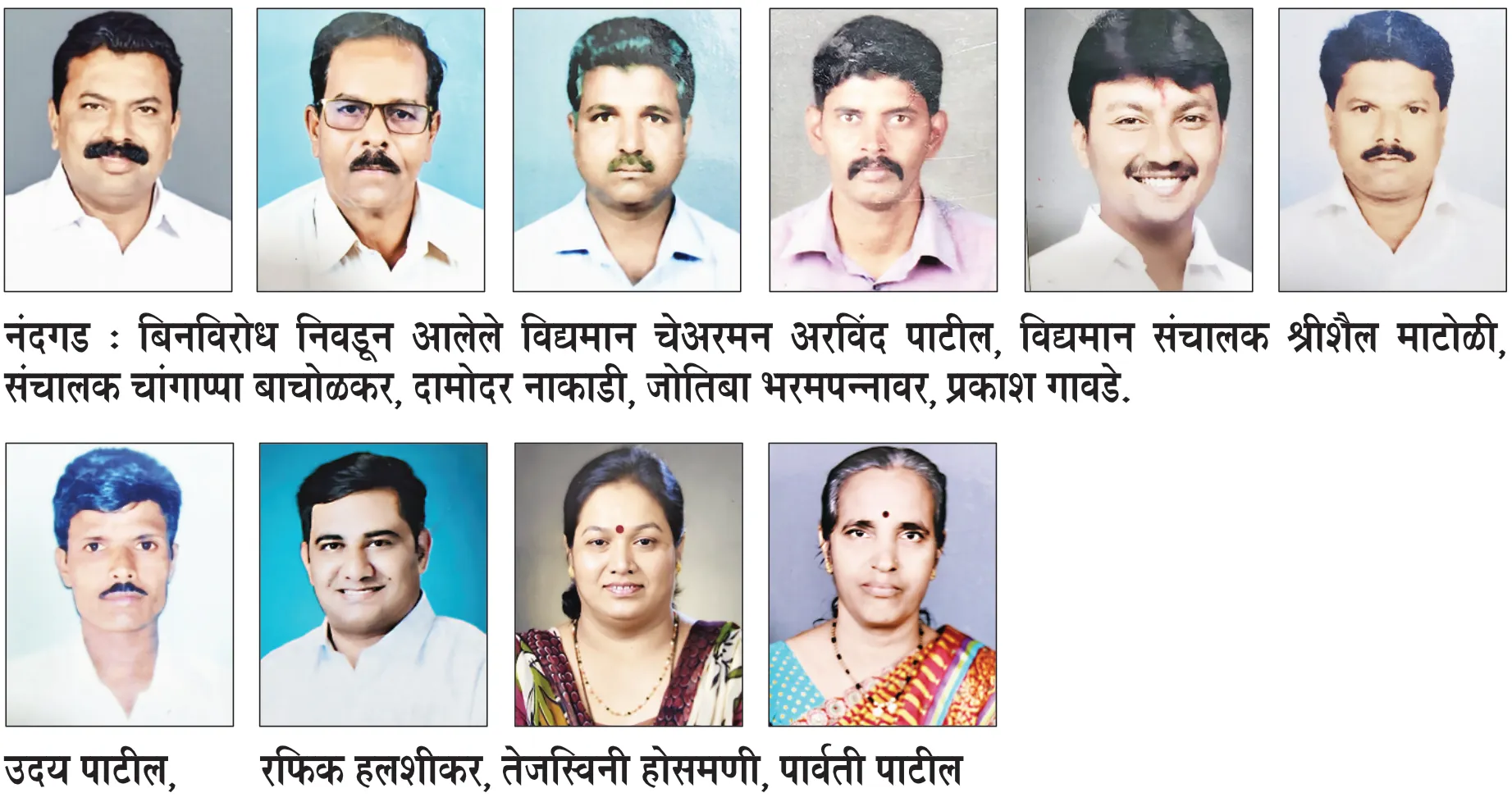 बिनविरोध निवडून आलेल्यामध्ये ‘अ’ वर्ग सहकार संघ गटामधून विद्यमान चेअरमन अरविंद पाटील (नंदगड), विद्यमान संचालक श्रीशैल माटोळी (चुंचवाड), चांगाप्पा बाचोळकर (इदलहोंड), दामोदर नाकाडी (बैलूर), जोतिबा भरमप्पनावर (अवरोळी), प्रकाश गावडे (संगरगाळी), उदय पाटील (चापगाव), ‘ब’ वर्ग वैयक्तिक सदस्यांकडून मागास ‘अ’ वर्ग गटातून रफिक हलशीकर (जांभेगाळी), महिला गटातून तेजस्विनी होसमणी (खानापूर), पार्वती पाटील (कसबा नंदगड) हे बिनविरोध निवडून आले आहेत. बिनविरोध निवडून आलेले दहाही उमेदवार अरविंद पाटील यांच्या नेतृत्वाखालील पॅनेलचे आहेत. निवडणूक रिंगणातील उमेदवार निवडणुकीत परिशिष्ट जाती गटातील एका जागेसाठी जितेंद्र मादार (नंदगड) विरुद्ध देवाप्पा मादार (हलशी) हे रिंगणात आहेत. तर परिशिष्ट जमाती गटातून निंगाप्पा नाईक (खानापूर) विरुद्ध निंगाप्पा तळवार (हंदूर) हे रिंगणात आहेत. ‘ब’ गटातून महारुद्रय्या हिरेमठ (इटगी) विरुद्ध रुक्माणा झुंजवाडकर (खैरवाड) रिंगणात आहेत.