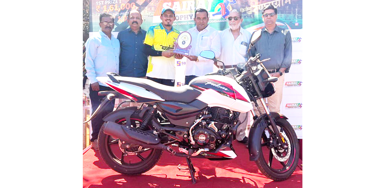 बेळगाव : साईराज स्पोर्ट्स क्लब आयोजित नव्या साईराज चषक ऑल इंडिया टेनिस बॉल क्रिकेट स्पर्धेत बुधवारी खेळविण्यात आलेल्या सामन्यात बेळगावच्या नारायणी संघाने अटीतटीच्या लढतीत डीजे बॉईज व लोकमान्यचा तर एवायएम अनगोळने शिवनेरी स्पोर्ट्स व राजमुद्रा मंडोळी संघांचा पराभव करून उपांत्यपूर्व फेरीत प्रवेश केला आहे. विशाल शहा, अकिब पिरजादे, संतोष कासवातकर, रितेश जोशी यांना सामनावीर पुरस्कार देण्यात आला. व्हॅक्सीन डेपो मैदानावरती खेळण्यात आलेल्या पहिल्या सामन्यात लोकमान्य स्पोर्ट्सने प्रथम फलंदाजी करताना 8 षटकात 3 गडी बाद 63 धावा केल्या. त्यात दर्पणने 24 तर विशालने 22 धावा केल्या. प्रत्युत्तरादाखल खेळताना बेळगावच्या नारायणीने 3 षटकात एक गडी बाद 66 धावा करून सामना नऊ गड्यानी जिंकला. त्यात विशाल शहाणे 5 षटकारासह नाबाद 44, जीवेशने 14 धावा केल्या. दुसऱ्या सामन्यात शिवनेरी स्पोर्ट्सने प्रथम फलंदाजी करताना 8 षटकात सर्व गडी बाद 43 धावा केल्या. त्यात संदीपने 13 धावा केल्या. एवायएम अनगोळतर्फे संतोषने दोन तर रोहित व वैभव यांनी प्रत्येकी एक गडी बाद केला. प्रत्युत्तरादाखल खेळताना 3.3 षटकात 1 गडी बाद 49 धावा करून सामना 9 गड्यांनी जिंकला. त्यात आकिबने 2 षटकारासह 24, अंकितने 14 धावा केल्या.