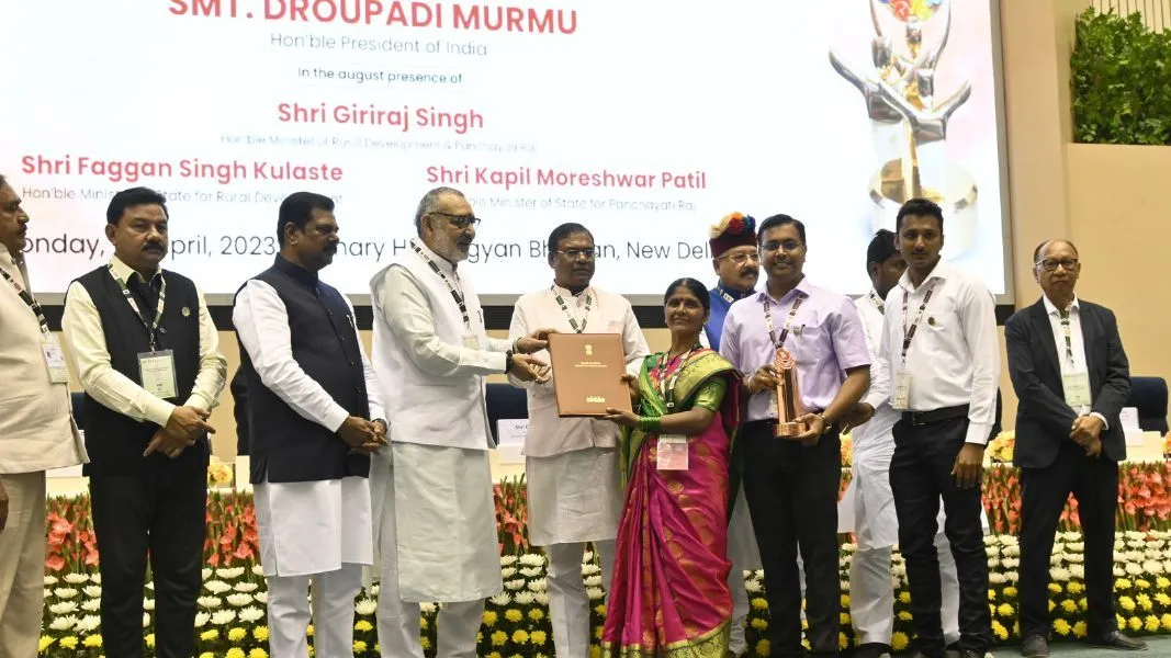 केंद्रीय मंत्री गिरिराज सिंह यांच्याकडून सरपंच लताबाई बाबुराव कांबळे यांचा सन्मान