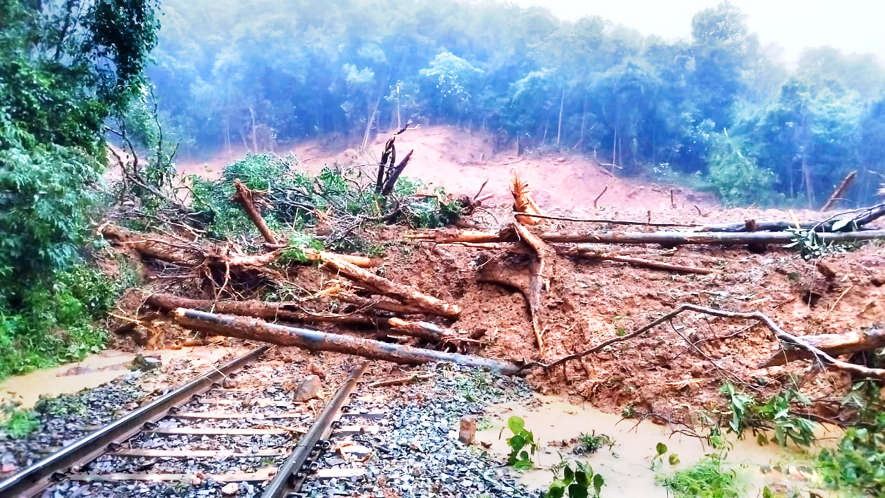 दूधसागर परिसरात सुरू असणाऱ्या मुसळधार पावसामुळे दुपारी 3.50 च्या सुमारास दरड कोसळली. तात्काळ नैऋत्य रेल्वेची इंजिनिअर्सची टीम घटनास्थळी दाखल झाली. जेसीबीच्या सहय्याने माती व झाडे दूर करण्याचा प्रयत्न सुरू होता. रात्री उशीरापर्यंत हे काम सुरू असल्याने गोवा एक्स्प्रेस कोकण रेल्वेमार्गे वळविण्यात आली आहे. – अनिश हेगडे-जनसंपर्क अधिकारी नैऋत्य रेल्वे