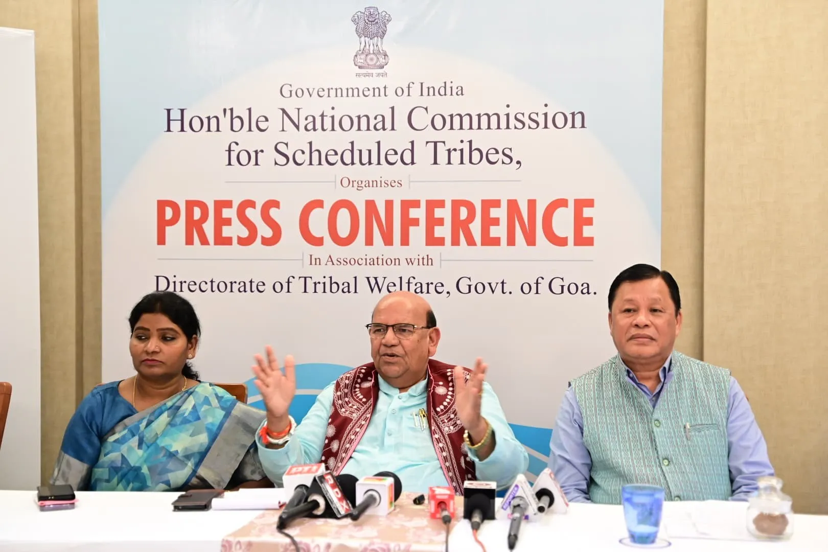 खास करून गोवा राज्यात आदिवासी लोकांना जमिनदारांकडून ना हरकत दाखले मिळविण्यात अडचणी येतात. परिणामी त्यांना विविध सरकारी योजना आणि अन्य लाभ मिळविण्यात अडचणी येतात. त्यासाठी आदिवासींना जमिनीचे मालकी हक्क प्रदान करण्याबाबतही आयोगाने राज्य सरकारला सकारात्मक कार्यवाही करण्याचे निर्देश दिले आहेत, असे आर्य यांनी सांगितले. दरम्यान, या पत्रकार परिषदेपूर्वी दिवसभरात घेतलेल्या बैठकांच्या माध्यमातून आयोगाने अनुसूचित जमातींचे कल्याण आणि विकासासाठी केंद्र सरकारतर्फे चालविल्या जाणाऱ्या विविध सुविधा, सुरक्षा आणि कार्यक्रमांच्या अंमलबजावणीचा आढावा घेतला. यावेळी मुख्य सचिव डॉ व्ही. कंदवेलू, पोलिस महासंचालक अलोक कुमार यांच्यासह अनुसूचित जमाती आयोगाचे अधिकारी आणि अन्य विविध खात्यांचे वरिष्ठ अधिकारी उपस्थित होते.