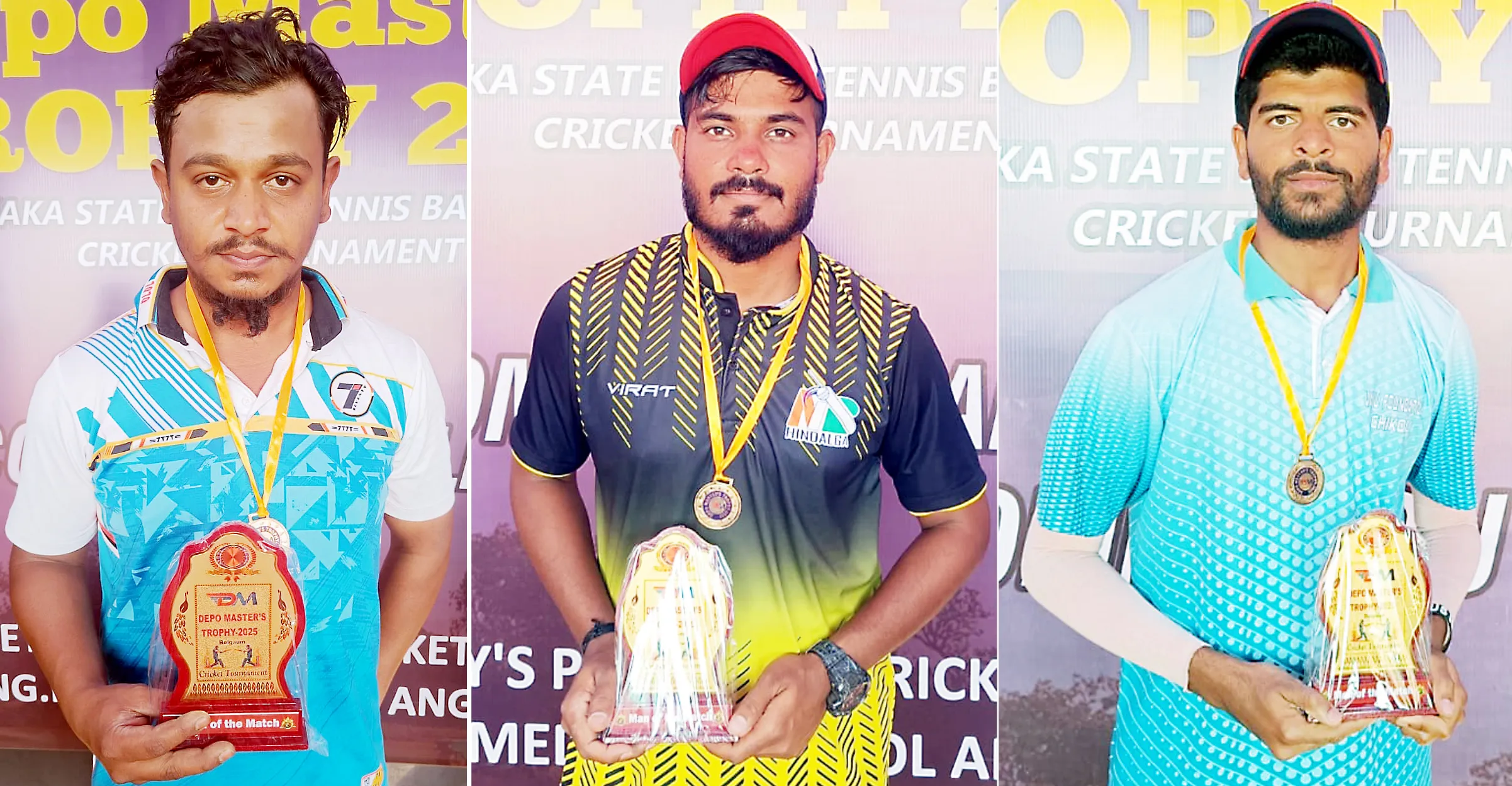 बेळगाव : डेपो मास्टर स्पोर्ट्स क्लब आयोजित डेपो मास्टर चषक टेनिसबॉल क्रिकेट स्पर्धेत मंगळवारी खेळविण्यात आलेल्या सामन्यातून नील बॉईज-हिंडलगा, आरसीसी व चिकोडी सीसी संघाने आपल्या प्रतिस्पर्ध्यांवर मात करुन पुढील फेरीत प्रवेश मिळविला. सुशांत कडोलकर, जुनेत ताशिलदार, अरुण ए. सी. यांना सामनावीर पुरस्कार देण्यात आला. एस.के.ई. प्लॅटिनम ज्युब्ली मैदानावरती खेळविण्यात आलेल्या पहिल्या सामन्यात नील बॉईज-हिंडलगा संघाने प्रथम फलंदाजी करताना 8 षटकात 4 गडी बाद 105 धावा केल्या. त्यात सुशांत कडोलकरने 4 षटकार 8 चौकारांसह 62 तर तनिष्क नाईकने 3 षटकार 3 चौकारासह 32 धावा केल्या. आर्यन स्पोर्ट्सतर्फे परशरामने 3 तर फैईमने 1 गडी बाद केला. प्रत्युत्तरादाखल खेळताना आर्यन स्पोर्ट्सने 8 षटकात 4 गडी बाद 80 धावा केल्या. त्यात गयाज पी.ने 3 षटकार 3 चौकारांसह 36, प्रथमेश कापुसकरने 1 षटकार 3 चौकारांसह 25 धावा केल्या. हिंडलगातर्फे सुशांत, तनिष्क, पवन व संतोष यांनी प्रत्येकी 1 गडी बाद केला.