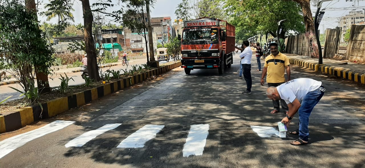 रस्त्यावरील गतिरोधकावर ओढले पांढरे पट्टे