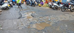 खड्ड्यांचा अंदाज वाहनचालकांना लागत नसल्याने जीव मुठीत धरून वाहने चालवावी लागत आहेत. परिणामी वाहतूक कोंडीला कारण ठरत आहे. रस्त्यावर साचलेल्या पाण्याशेजारीच रस्त्यावरील व्यापाऱ्यांना व्यवहार करावा लागत आहे. तर खड्ड्यातील पाणी वाहनांच्या रहदारीमुळे पादचाऱ्यांच्या अंगावर उडत असल्यामुळे वादाला कारण ठरत आहे. रस्त्याच्या विकासाकडे दुर्लक्ष करण्यात आल्याने नागरिकांतून तीव्र संताप व्यक्त करण्यात येत आहे. स्मार्ट सिटी योजनेंतर्गत शहराचा विकास करण्यात येत असल्याचे सांगण्यात येत असले तरी अंतर्गत रस्त्यांच्या विकासाकडे दुर्लक्ष करण्यात आल्याने शहरवासियांना खड्डेमय रस्त्यातून प्रवास करावा लागत आहे. याकडे मनपा लक्ष देणार का?असा प्रश्न नागरिकांतून उपस्थित केला जात आहे.