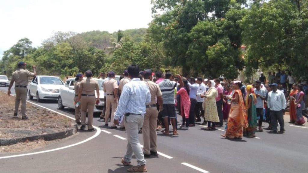 झाराप – पत्रादेवी राष्ट्रीय महामार्गावर नेमळे ते वेत्ये दरम्यान वारंवार होत असलेल्या अपघातांच्या पार्श्वभूमीवर राष्ट्रीय महामार्ग विभागाने अपघात रोखण्यासाठी उपाययोजना करावी या मागणीसाठी नेमळेसह वेत्ये, मळगाव येथील ग्रामस्थांनी नेमळे फौजदारवाडी येथे राष्ट्रीय महामार्गावर आंदोलन केले .या आंदोलनाच्या वेळी आंदोलकांनी काहीकाळ राष्ट्रीय महामार्ग रोखून धरला. सावंतवाडी पोलिसांनी या आंदोलकांना आंदोलनापासून परावृत्त केले .राष्ट्रीय महामार्ग विभागाचे अधिकारी, पोलीस निरीक्षक फुलचंद मेंगडे यांनी आंदोलकांशी चर्चा केली.त्यानंतर राष्ट्रीय महामार्ग विभागाचे वरिष्ठ अधिकारी उद्या नेमळे येथे दाखल होणार आहेत त्यांच्याशी आंदोलक चर्चा करणार आहेत. त्यामुळे सोमवारचे रास्ता रोको आंदोलन स्थगित ठेवण्यात आले आहे .