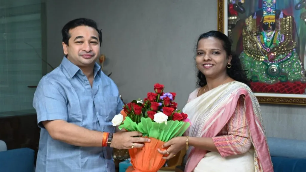 सिंधुदुर्गच्या नूतन जिल्हाधिकारी तृप्ती धोडमिसे यांनी पालकमंत्री नितेश राणे यांची येथील ओम गणेश निवासस्थानी भेट घेतली. तृप्ती धोडामिसे यांनी नुकताच सिंधुदुर्गच्या जिल्हाधिकारी पदाचा कार्यभार स्वीकारला होता. दरम्यान पालकमंत्री नितेश राणे यांनीही श्रीमती धोडमिसे यांचे स्वागत केले.