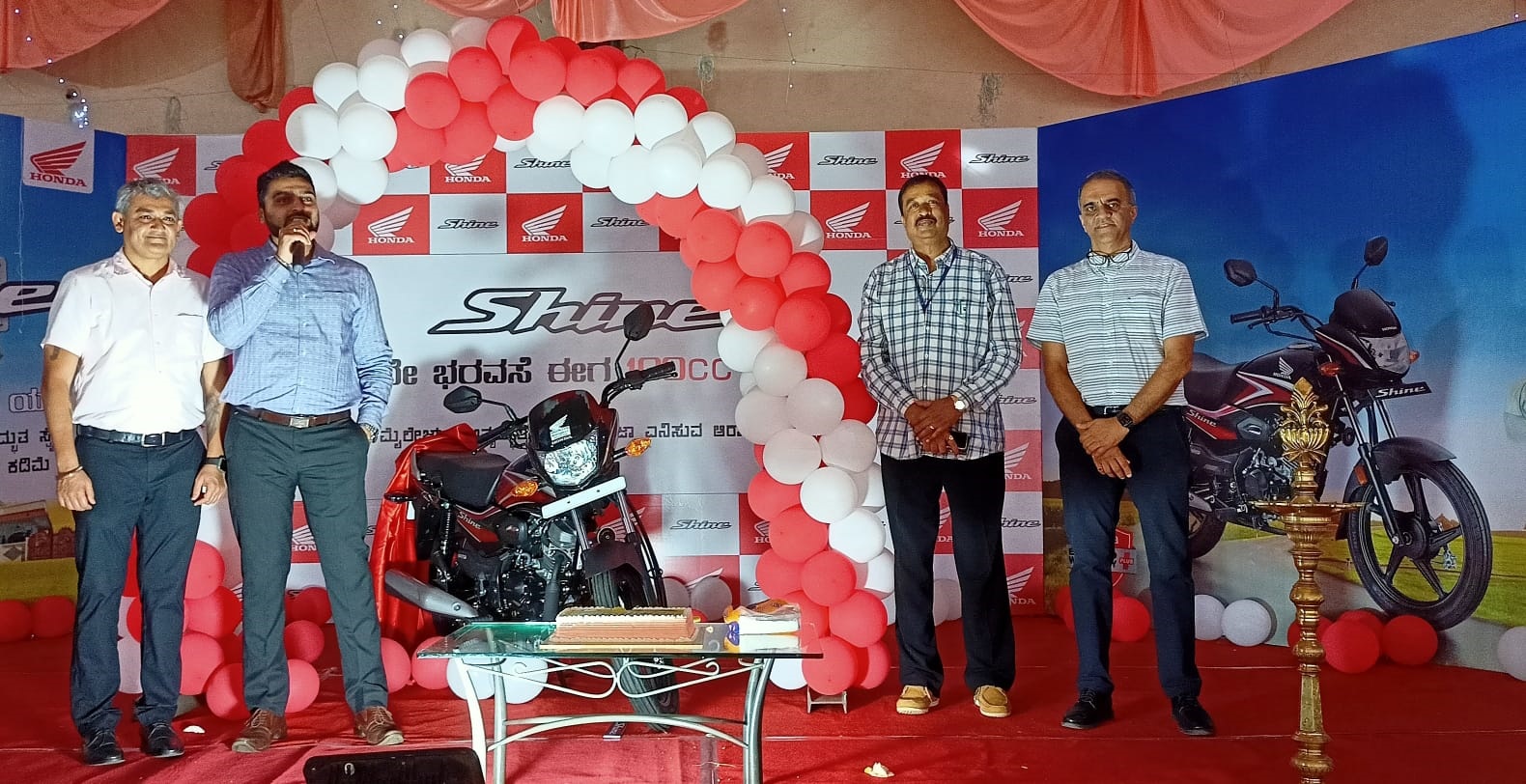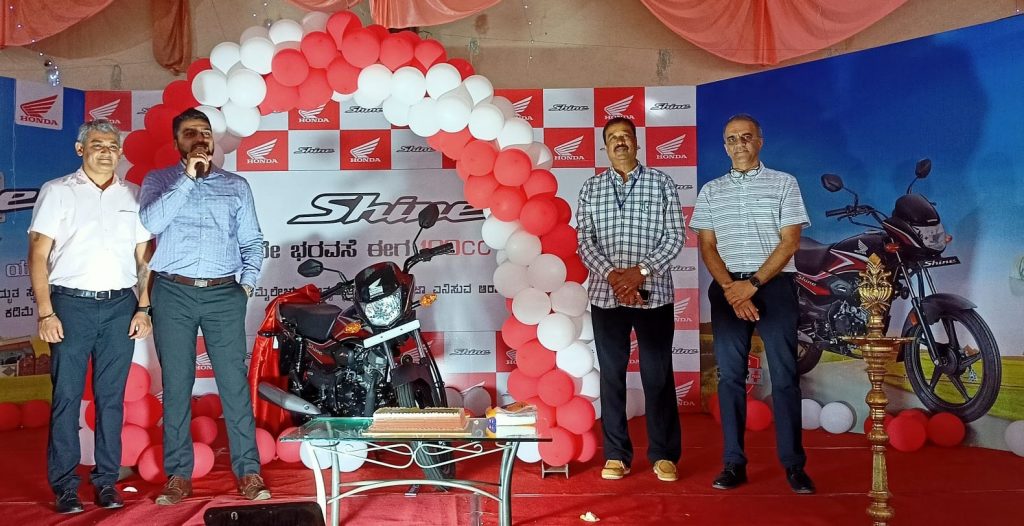 बेळगाव : पॅटसन व मंगेश होंडामार्फत सोमवारी मिलेनियम गार्डनमध्ये नवीन होंडा शाईन 100 सीसी बाईक लाँच करण्यात आली. आरटीओ नागेश मुंडास, पॅटसन होंडाचे मालक राहुल पाटील, मंगेश होंडाचे मालक रोहित देशपांडे, कंपनी विभाग प्रमुख प्रेम बी. आदींच्या हस्ते ही नवीन बाईक लाँच करण्यात आली. या सोहळ्याला मान्यवरांच्या हस्ते शानदार सुरुवात झाली. यावेळी या नवीन बाईकविषयी दुचाकीप्रेमींना अधिक माहिती देण्यात आली. या बाईकमध्ये 100सीसी एअर कुल्ड, सिंगल सिलेंडर, फ्युएल इंजेक्टेड इंजिन देण्यात आले आहे. कंपनीने पाच रंगांमध्ये ही बाईक उपलब्ध केली आहे. उत्तम मायलेज आणि उत्सर्जनासाठी ट्यून आहे. लांब सीट व दैनंदिन प्रवासासाठी ही बाईक आरामदायी आहे. त्यामुळे या बाईककडे दुचाकीप्रेमींचा कल वाढेल, असा विश्वास व्यक्त करण्यात आला. यावेळी पॅटसनचे मॅनेजर अभिषेक मठपती, सुनील हळदणकर, होंडाचे कर्मचारी व दुचाकीप्रेमी उपस्थित होते.