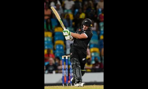 संक्षिप्त धावफलक ः विंडीज 50 षटकात 8 बाद 301 (मेयर्स 105, पुरन 91, होप 51, जोसेफ नाबाद 20, बोल्ट 3-53, सँटनर 2-38, साउदी, फर्ग्युसन, नीशम प्रत्येकी 1 बळी), न्यूझीलंड 47.1 षटकात 5 बाद 307 (ग्युप्टिल 57, कॉनवे 56, लेथम 69, मिचेल 63, नीशम नाबाद 34, ब्रेसवेल नाबाद 14, ऍलेन 3, होल्डर 2-37, कॅरे 2-77, जोसेफ 1-61).