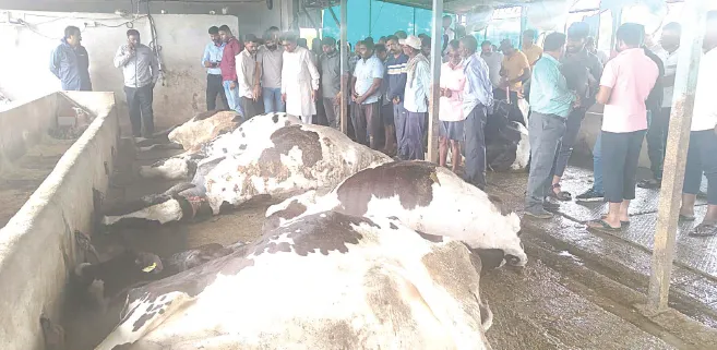 यावेळी तहसीलदार श्यामला खोत, गटविकास अधिकारी प्रकाश पोळ, विराज नाईक, पशुसंवर्धन अधिकारी पंचायत समिती शिराळा सतीश कुमार जाधव, विस्तार अधिकारी रवींद्र मटकरी, वारणा दूध संघाचे अधिकारी एस. एन. खोत, डॉ. कैलास पोकळे, डॉ. दीपक पाटील यांनी तात्काळ घटनास्थळी भेट दिली. तर सुनील पाटील, प्रताप चव्हाण, के.डी. पाटील, सरपंच सुजाता पाटील, उपसरपंच राजेश चव्हाण, उत्तम पाटील, प्रकाश पाटील, सुधीर कुंभार, जालिंदर मोरे, महादेव चव्हाण, विश्वास मोरे, आनंदा मोरे, शहाजी मोरे, शिवाजी चव्हाण, निलेश पाटील, राजू पाटील व ग्रामस्थ मोठ्या संख्येने उपस्थित होते.