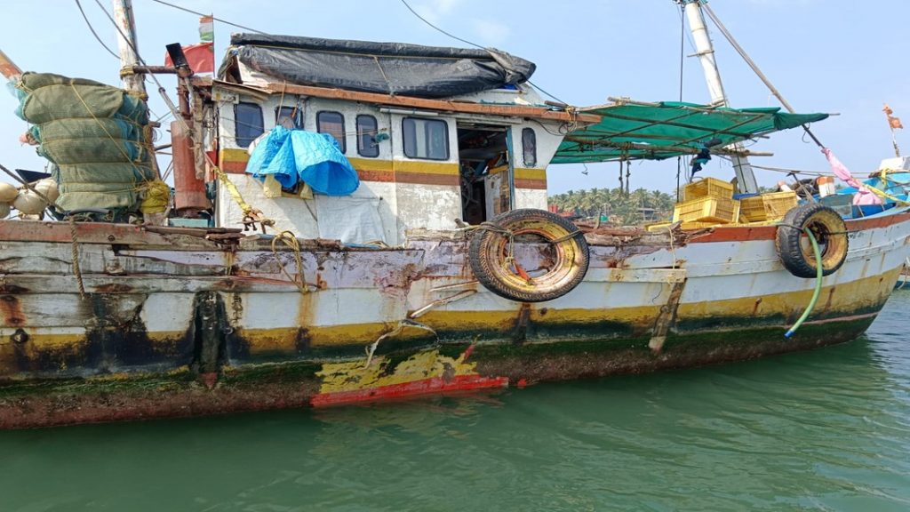 कर्नाटक-मलपी येथील एका हायस्पीड ट्रॉलरने दिलेल्या जोरदार धडकेत मालवण येथील विश्वेश्वर प्रसाद या ट्रॉलरचे सुमारे १० लाख रुपयांचे नुकसान झाले. ट्रॉलरवरील नऊ मच्छीमारांना वाचविण्यात ‘एकदंत’ या दुसऱ्या ट्रॉलरवरील मच्छीमारांना यश आले. महतप्रयासाने पाण्याने भरलेला ट्रॉलर किनाऱ्यावर सकाळी १०.३० वाजता आणण्यात आला. शनिवारी मध्यरात्री १.१५ वाजता ही घटना घडली. याप्रकरणी अज्ञात मलपी ट्रॉलरविरोधात ट्रॉलर मालक मोहन शिरसाट यांनी पोलिसात तक्रार दाखल केली आहे.