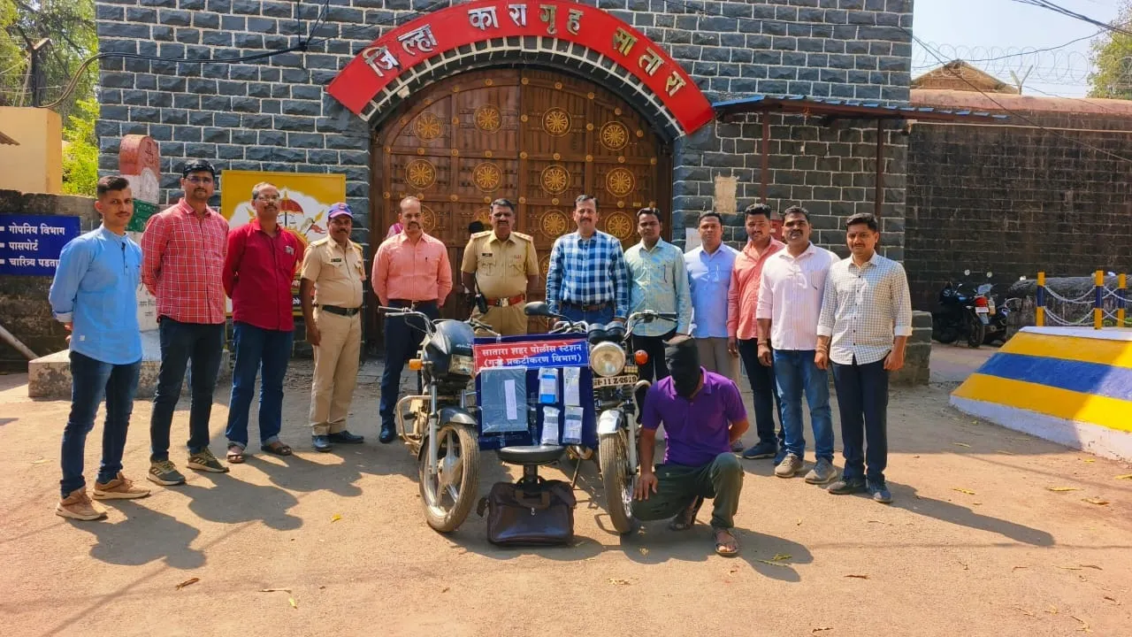 सातारा शहर डी.बी. पथकातील पथक हे घरफोडीतील सराईत आरोपीची माहिती घेत असताना एक सराईत आरोपीने सातारा शहर परिसरामध्ये चोरी केली असल्याची माहिती प्राप्त झाली होती. जिल्हा रूग्णालय सातारा याठिकाणी चोरीचे साहित्य विक्री करण्यासाठी येणार असल्याची माहिती पथकाला मिळाली. त्यानुसार डी.बी. पथकातील पोलीस पथक या ठिकाणी पेट्रोलिंग करत होते. सायंकाळच्या सुमारास हा चोरटा संशयितरित्या फिरत असताना दिसून आल्यावर डी. बी. पथकाने त्यास ताब्यात घेतले. त्याच्याकडे चौकशी केली असताना त्याने सातारा शहरामध्ये दोन ठिकाणी घरफोडी व दोन ठिकाणाहून मोटारसायकल चोरी केली असल्याचे सांगितले.