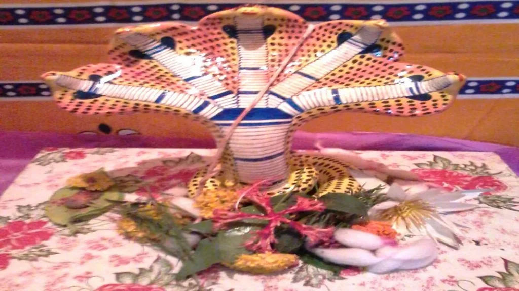 नागपंचमीच्या पूर्वसंध्येला ब्राम्हण भोजन व एकादशमी केली जाते. यावेळी कुलदेवतेची पूजा करण्यात येते नागोबाचे विधिवत पूजन करण्यात येते.दुसऱ्या दिवशी सकाळी व दुपारी नागाला करंज्यांचा नैवेद्य दाखवण्यात येतो सांयकाळी अळवाच्या पानात नागाचे विसर्जन केले जाते.विसर्जनानंतर शेगलाची भाजी व भाकरी असा प्रसाद वाटप केला जातो.
