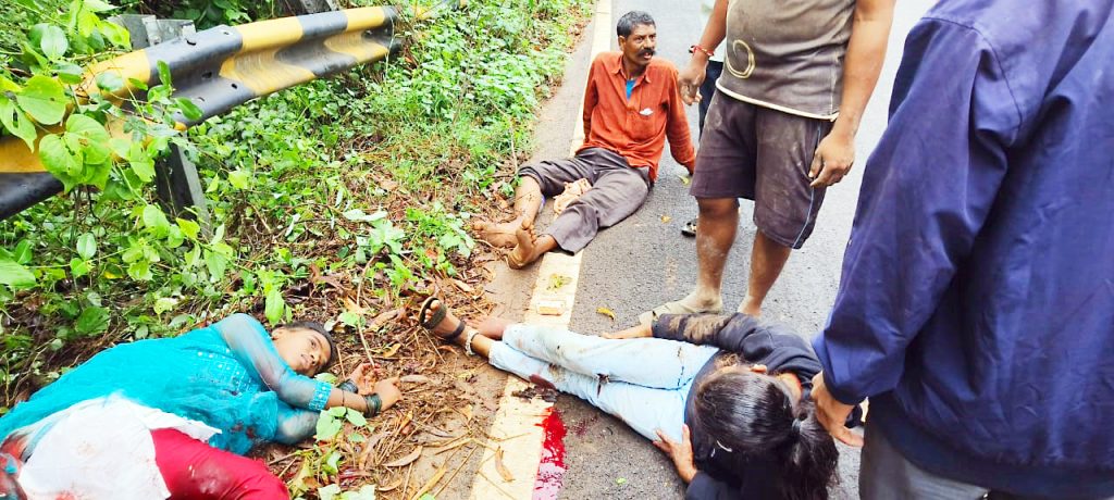 कडतन बागेवाडी येथील भीमाप्पा व्हनूर, पल्लवी व्हनूर, यल्लाप्पा व्हनूर आणि ऐश्वर्या व्हनूर हे आपल्या हिरोहोंडा केए 22-एचएफ-8307 दुचाकीवरून आपल्या गावी जात होते. गोल्याळी फाट्याजवळ शिरशी डेपोची बस क्रमांक केए 42-एफ-0927 बेळगावला येत होती. यावेळी गोल्याळी फाट्यानजीक दुचाकीवरील चालकाचे नियंत्रण सुटल्याने बसला धडक बसली. यामध्ये व्हनूर कुटुंबीय गंभीर जखमी झाले आहे. अपघाताची भीषणता इतकी हृदयद्रावक होती की, यात यल्लाप्पा व्हनूर याचा पाय जांघेपासून तुटून रस्त्यावर पडला होता. तर पल्लवी आणि ऐश्वर्या यांना जबर मार बसल्याने बराच रक्तस्त्राव झाला. तिघांच्याही डोकीला जबर मार बसला आहे. अपघातस्थळी 108 रुग्णवाहिका वेळेत पोहचू शकली नाही. चारही जखमी रस्त्यावर तडफडत पडले होते. रुणवाहिका एक तास उशिरा आल्याने जखमींचा मोठ्या प्रमाणात रक्तस्त्राव झाला. वारंवार दूरध्वनीवरून संपर्क साधूनही रुग्णवाहिका एक तास उशिरा आली. जखमींना रुग्णवाहिकेतून खानापूर येथील सरकारी दवाखान्यात आणण्यात आले. त्यानंतर त्यांना अधिक उपचारासाठी बेळगाव येथील बिम्स इस्पितळात पाठविण्यात आले आहे. याबाबत नंदगड पोलिसात गुन्हा नोंद झाला असून पोलीस पुढील तपास करत आहेत. बेळगाव येथे जखमींवर उपचार सुरू असताना यल्लाप्पा प्रकाश व्हनूर (वय 25) याचा मृत्यू झाला आहे. तर पल्लवी भीमाप्पा व्हनूर (वय 14) आणि ऐश्वर्या भीमाप्पा व्हनूर (वय 16) यांची प्रकृती चिंताजनक असून त्यांच्यावर उपचार सुरू आहेत.