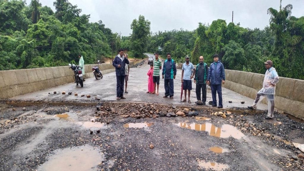 मात्र अतीवृष्टीमुळे या पुलाच्या एका बाजूचा जोडरस्ता खचला. संबंधित खात्याने याची तात्काळ दखल घेऊन वाहतूक सुरळीत करावी तसेच नेहमी दुथडी भरून वाहत असल्यामुळे पुलाच्या दोन्ही बाजूने जोड रस्त्यावर सूचना फलक लावावेत अशी मागणी वाहन चालकांमधून होत आहे.