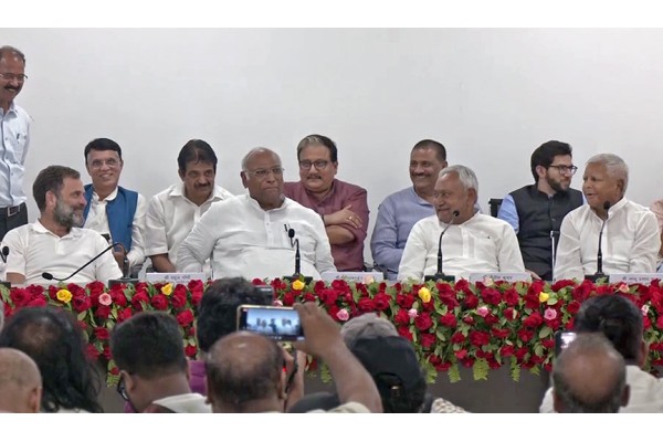 पाटण्यात भाजपविरोधी पंधरा राजकीय पक्षांची मोठी बैठक शुक्रवारी झाली. मुख्यमंत्री नितीशकुमार यांच्या अध्यक्षतेखाली झालेल्या या बैठकीत सर्व पक्षांच्या नेत्यांनी आपली मते मांडली. सूत्रांकडून मिळालेल्या माहितीनुसार, 2024 च्या लोकसभा निवडणुकीसंदर्भात विरोधी पक्षांमधील समन्वयासाठी नितीशकुमार यांची राष्ट्रीय संयोजक म्हणून नियुक्ती करण्याबाबतही चर्चा झाली. यासोबतच सर्व पक्षांचा समान किमान कार्यक्रम करण्यावरही चर्चा झाली. जवळपास पाच तास चाललेल्या बैठकीनंतर सर्व नेत्यांची संयुक्त पत्रकार परिषद झाली. काँग्रेसचे राष्ट्रीय अध्यक्ष मल्लिकार्जुन खर्गे यांनी याप्रसंगी आम्ही समान अजेंडा ठरवत असल्याचे जाहीर केले.