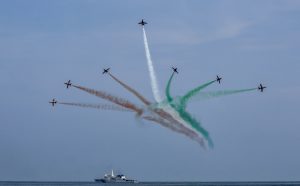 या एअर शोमध्ये स्वदेशात निर्मित लाइट कॉम्बॅट एअरक्राफ्ट तेजससोबत राफेल, मिग-29 आणि सुखोई-30 एमकेआय यासारख्या अत्याधुनिक लढाऊ विमानांनी भाग घेतला आहे. याचबरोबर सूर्यकिरण एरोबेटिक्स टीम आणि सारंग हेलिकॉप्टर डिस्प्ले टीमने देखील आकाशात स्वत:च्या कौशल्याचे प्रदर्शन पेले आहे. नौदलाचे पी8आय आणि विंटेज डकोटा देखील फ्लायपास्टमध्ये सामील झाले.