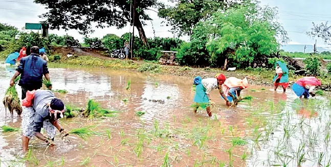 भात रोपांची लावणी करताना शेतात पाणी साचून राहण्यासाठी चारी बाजूंनी बांध घातले जातात. पाणी असेल तरच लावण करता येते. सध्या पाऊस असल्याने लावणी सुरू आहेत. ज्यांच्या शेतात पाणी साचत नाही त्यांनी कृषी पंपाच्या साहाय्याने शेतात पाणी सोडण्याची व्यवस्था केली आहे.