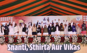 काँग्रेस आणि नॅशनल कॉन्फरन्स या प्रदेशात पाकिस्तानचा कार्यक्रम राबवित आहेत. या पक्षांचे बोटचेपे धोरण या प्रदेशाच्या सर्व समस्यांचे आणि ऱ्हासाचे मूळ आहे. या प्रदेशाचा विकास करतानाही या पक्षांनी पक्षपाती भूमिका दर्शविली आहे. जम्मू भागाचा विकास हेतुपुरस्सर रोखण्यात आला. रियासी आणि उधमपूर भागाला विकासापासून वंचित ठेवण्यात आले. आज जो चिनाब सेतू या भागाचे प्रमुख वैशिष्ट्या बनला आहे, त्याच्या निर्माण कार्याचा प्रारंभ अटलबिहारी वाजपेयी यांच्या सत्ताकाळात करण्यात आला होता. काँग्रेसच्या दहा वर्षांमध्ये या निर्माणकार्याची गती रोखण्यात आली. 2014 नंतर या सेतूचे काम पूर्ण करण्यात आले. काँग्रेसचे आणि विकासाचे काही देणेघेणे नाही, असा घणाघात त्यांनी भाषणात केला.