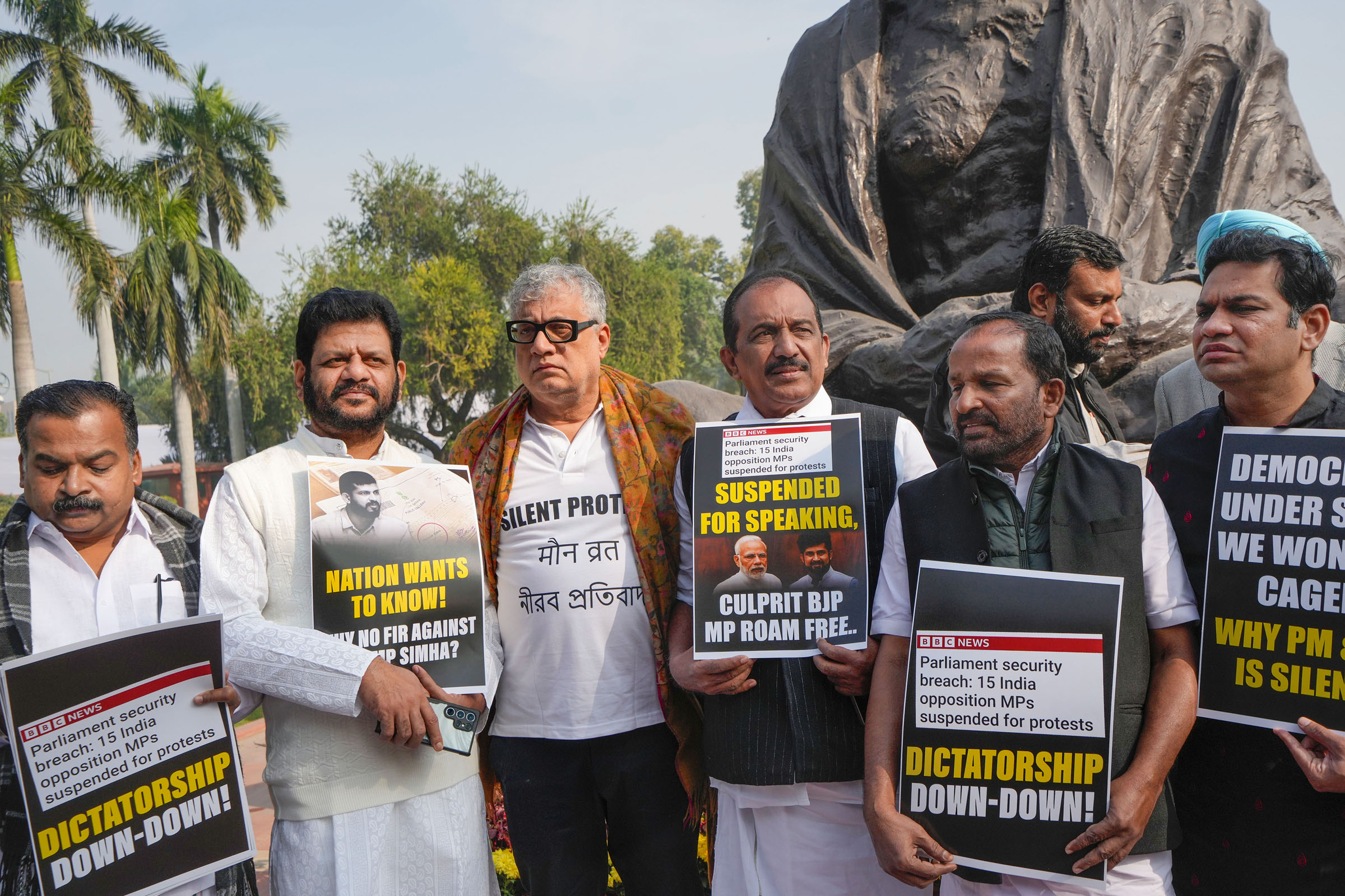 संसदेच्या सुरक्षेबाबत गुरुवारी 14 डिसेंबर रोजी दिवसभर सभागृहात गदारोळ झाला. लोकसभा आणि राज्यसभेतील 14 विरोधी खासदारांना संपूर्ण अधिवेशनासाठी निलंबित करण्यात आले. काँग्रेसचे 9, माकप 2, डीएमके आणि सीपीआयचे प्रत्येकी एक असे एकूण 13 लोकसभा खासदार निलंबित झाले आहेत. तसेच तृणमूल काँग्रेसचे राज्यसभेतील खासदार डेरेक ओब्रायन यांना संपूर्ण अधिवेशनासाठी निलंबित करण्यात आले आहे.