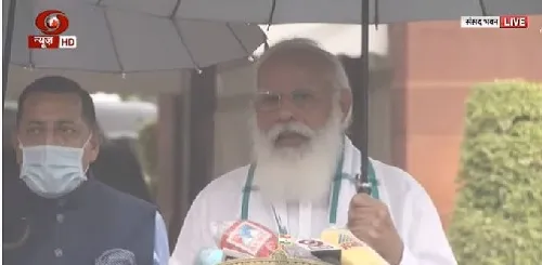 संसदेच्या पावसाळी अधिवेशनाला आजपासून सुरुवात होत आहे. अधिवेशनात शेतकरी आंदोलन, महागाई, बेरोजगारी या मुद्द्यांवर विरोधी पक्ष सरकारला घेरण्याच्या प्रयत्नात आहे. त्याआधी पंतप्रधान नरेंद्र मोदी यांनी माध्यमांसमोर येऊन संबोधित केलं. कोरोना विरोधातील लढाईत आपण सर्वांनी एकत्र आलं पाहिजे असं आवाहन पंतप्रधान नरेंद्र मोदी यांनी केलं आहे.