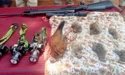 राधानगरी प्रादेशिक वनविभागाच्या सरवडे परिमंडळाच्या कार्यक्षेत्रात शिकार आणि वनवा प्रतिबंध करण्यासाठी वनविभागाचे पथक रात्रगस्त घालत असताना बारडवाडीहून खिंडी व्हरवडे गावच्या दिशेने वनविभागाचे पथक शासकिय वाहनातून जात असता खिंडी व्हरवडे गावच्यावरील डोंगरात बॅटरीचा प्रकाश झोत आणि संशयास्पद हालचाली दिसून आल्याने, जागेवर जाऊन पाहणी केली असता. तेथे मोटारसायकली आढळल्या, या ठिकाणी दबा धरून बसलेनंतर संशयित आरोपी हे मोटरसायकल जवळ आल्यानंतर रंगेहाथ सापडले. त्यांच्याकडून शिकार केलेला एक कुरतुडा पक्षी, सहा लाव्हरी पक्षी, एक एअरगण, मोबाईल, बॅटरी आणि तीन मोटरसायकली मिळून आल्या. यामध्ये राधानगरी तालुक्यातील आणाजे येथील पाच आणि ठिकपुर्ली येथील एका आरोपीला ताब्यात घेतलेआहे यामध्ये रामचंद्र पाटील,. प्रशांत दादू पाटील, मारूती केरबा जाधव, प्रदिप नारायण पाटील, अमर दिनकर इंगवले, (सर्व राहणार आणाजे), शिवाजी बापू लोकरे (ठिकपुर्ली) यांना अटक करण्यात आले आहेत.