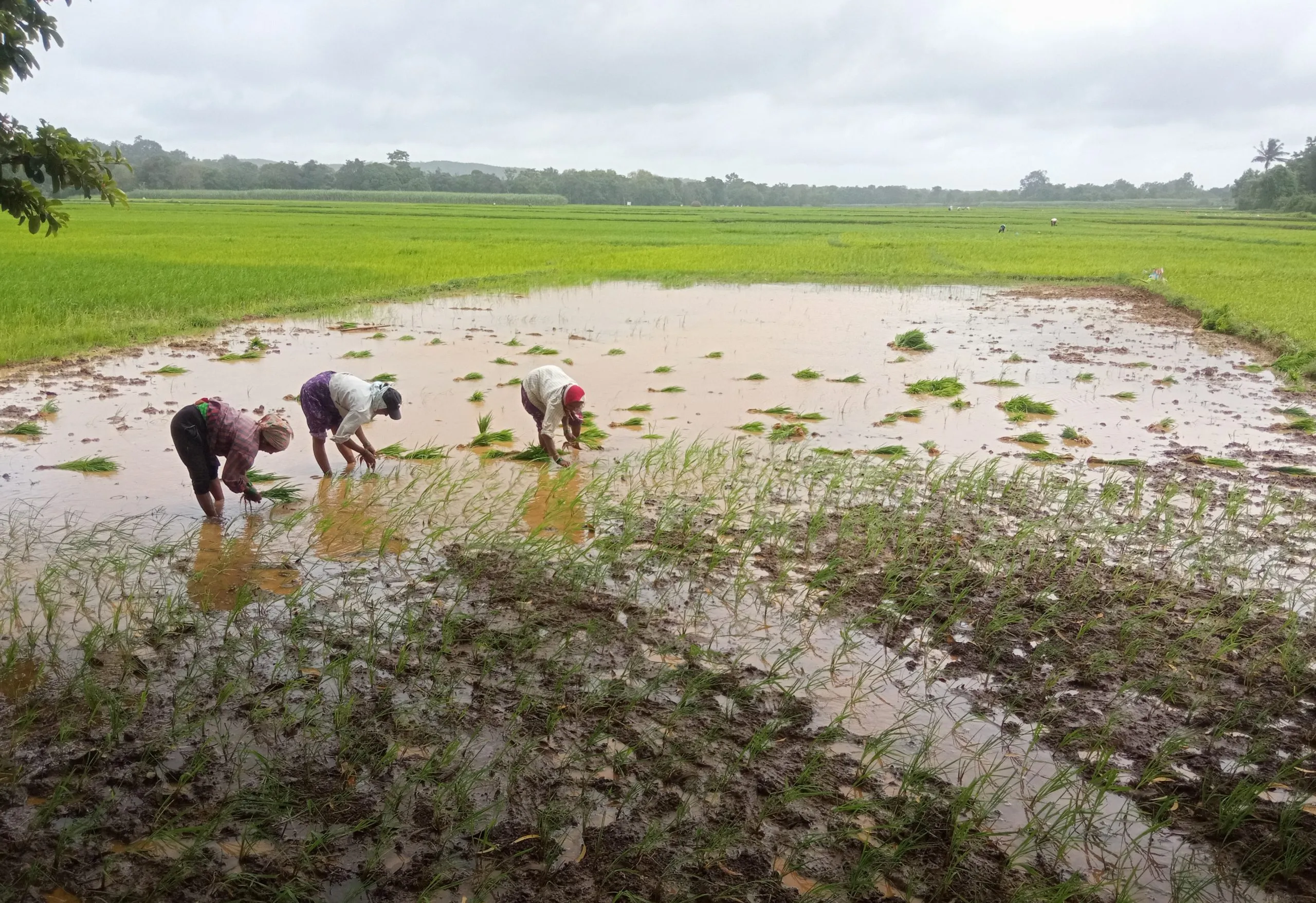 झुंजवाड, बेकवाड, बिडी, नंजिनकोडल भागात हंगामानुसार बऱ्यापैकी पाऊस झाल्याने यावर्षी भात पेरणी वेळेनुसार झाली आहे. त्यातच गेला आठवडाभर दमदार पाऊस पडल्यामुळे भातशेतीत मुबलक पाणी झाले आहे. त्यामुळे हंबडणीची व भात रोप लागवडीची कामे सुरू आहेत. बेकवाड, बिडी भागातील निम्म्याहून अधिक शेतवडीत भाताचे पीक घेतले जाते. उर्वरित जमिनीत ऊस, भुईमूग, मका पीक घेतले जाते. यावर्षी तब्बल महिन्याहून अधिक काळ पेरणी हंगामासाठी मुबलक पाऊस ठरला. त्यामुळे शेतकऱ्यांनी भात पिकासाठी ठेवलेल्या 90 टक्के जमिनीत भाताची पेरणी केली आहे. तर उर्वरित दहा टक्के जमिनीत रोप लागवड केली जात आहे. पेरणी करून वीस ते पंचवीस दिवस झाले असल्याने भात बऱ्यापैकी आले आहे. पेरलेल्या भात जमिनीत गेल्या आठवडाभरापासून ओली कोळपणी व हंबडणीची कामे उरकण्यात आली. तर गेल्या दोन-तीन दिवसांपासून भात रोप लागवडीची कामे सुरू आहेत. रोप लागवडीसाठी मुबलक भाताचे तरु आहेत. शेतीकामे जोरात सुरू असल्याने मजूर मिळणे कठीण झाले आहे. सध्या रोप लागवड करणाऱ्या महिला मजुराला तीनशे रुपये प्रति दिवस मजुरी दिली जात आहे.