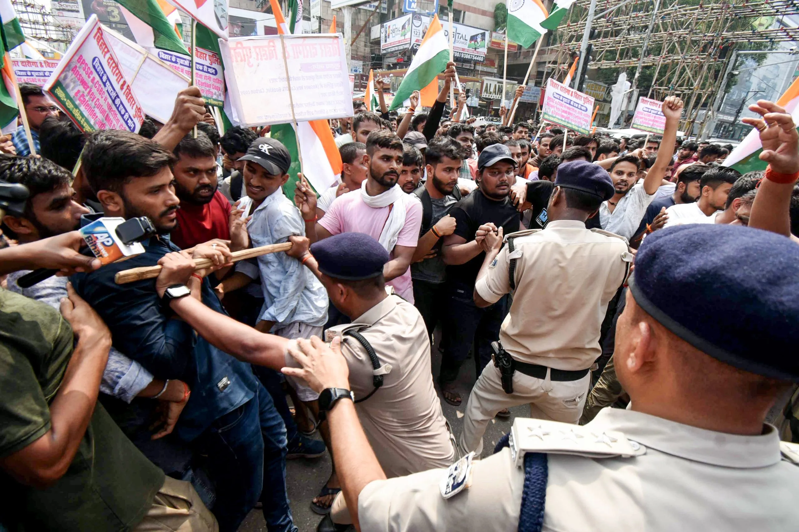 बिहारमध्ये उपनिरीक्षक आणि पोलीस भरतीसाठी आंदोलन करणाऱ्या उमेदवारांवर लाठीचार्ज करण्यात आला. लाठीचार्ज दरम्यान, उमेदवारांनी हातात तिरंगा धरला होता. पोलिसांनी तिरंगा हिसकावून घेत त्याच काठीने त्यांना मारहाण करण्यास सुरुवात केली. पाटणा कॉलेजमधून हातात तिरंगा घेऊन आलेले उमेदवार सकाळपासूनच मुख्यमंत्री भवनाला घेराव घालण्यासाठी निघाले होते. जेपी गोलंबर येथील बॅरिकेडिंग तोडून उमेदवार डाकबंगला चौकात पोहोचल्यानंतर पोलिसांनी उमेदवारांना लाठीने मारहाण केली. येथे, तिरंगा असलेल्या काठ्यांनी उमेदवारांना मारहाण केल्याबद्दल आरजेडीने बिहार सरकार आणि पोलिसांना जाब विचारत हा तिरंग्याचा अपमान असल्याचा आरोप करण्यात आला आहे. पाटण्यात झालेल्या निदर्शनात केवळ भरतीचे उमेदवारच सहभागी नव्हते तर अनेक शिक्षक आणि शिक्षक नेतेही या आंदोलनाचा भाग बनले होते. त्यांच्या पाठिंब्यामुळे उमेदवारांच्या मागण्या आणखी बळकट होत आहेत.
