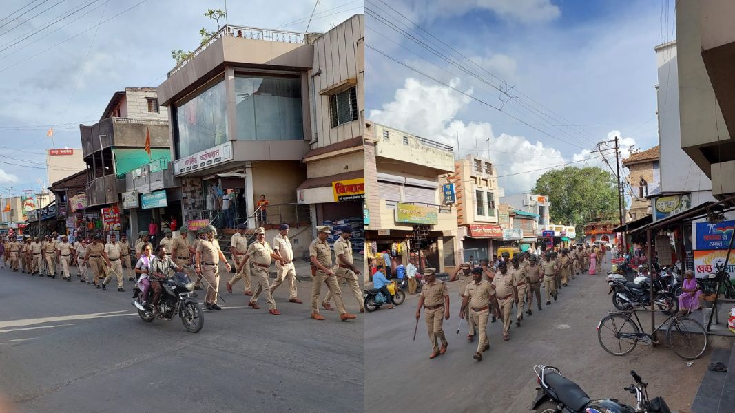 Kolhapur News : शिरोळ पोलीस ठाण्याच्या वतीने पोलीस निरीक्षक दत्तात्रय बोरिगिडे यांच्या मार्गदर्शनाखाली शनिवारी शिरोळ व नांदणी या ठिकाणी पद संचालन करण्यात आले.कोल्हापूर येथे घडलेल्या घटनेच्या अनुषंगाने कायदा व सुव्यवस्था राखण्याकरिता शिरोळ पोलीस ठाणे हद्दीतील शिरोळ व नांदणी गावात शनिवारी सायंकाळी पावणे पाच वाजण्याच्या सुमारास एस.टी.स्टण्ड,काळी मशिद,पांढरी मशिद, छत्रपती शिवाजी महाराज तक्त, संभाजी चौक,पोष्ट आँफीस , वनवे चौकअसे पदसंचालन करण्यात आले.