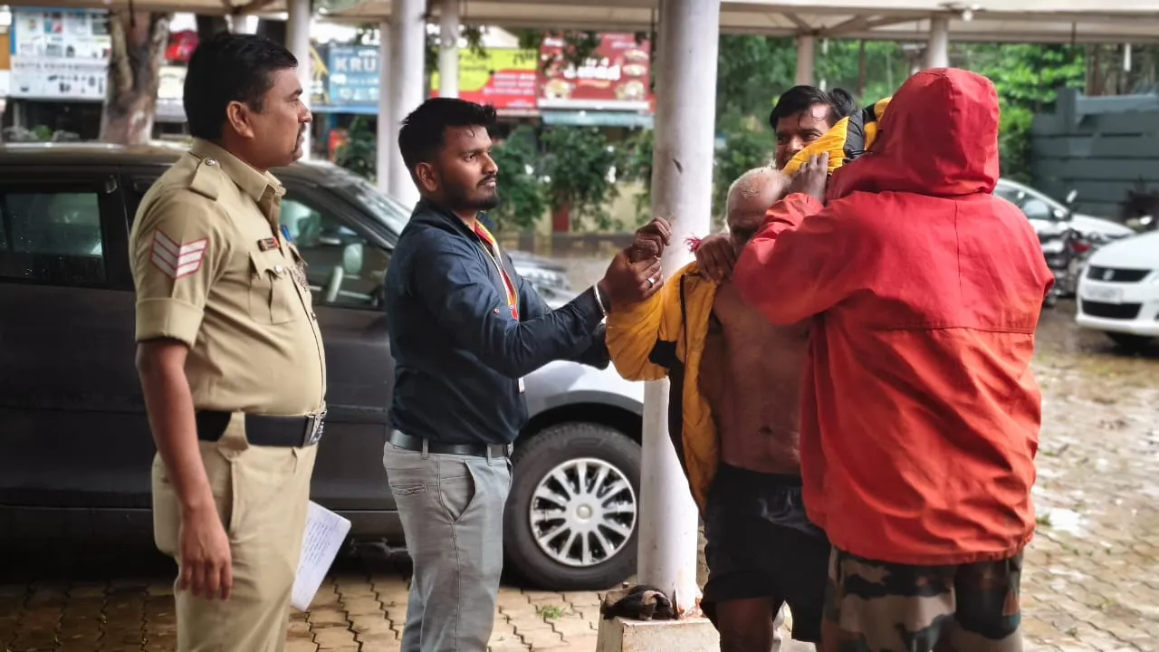 बेळगाव : बेळगाव रेल्वेस्थानकाजवळ एक वयोवृद्ध व्यक्ती पावसात पूर्णपणे भिजली होती. त्यांना चालताही येत नव्हते. त्या व्यक्तीला सामाजिक कार्यकर्ते तसेच पोलिसांनी मदत केली. रेल्वेस्थानक येथे रविवारी एक असाहाय्य वयोवृद्ध व्यक्ती भरपावसात बसली होती. ती व्यक्ती पूर्णपणे भिजलेली होती आणि वयोवृद्ध असल्याने त्याला चालताही येत नव्हते. ही माहिती सामाजिक कार्यकर्ते श्रीकांत चिवटे तसेच कॅम्प पोलीस ठाण्यातील पोलीस कर्मचारी व पी. टी. पम्मार यांनी त्या ठिकाणी धाव घेतली. यावेळी त्या निराधार वयोवृद्धाला श्रीकांत चिवटे यांनी आपल्याकडील गरम जॅकेट घालण्यास दिले आणि त्यांना संपूर्ण कपडे घालून त्यांना पुढील उपचारासाठी बेळगाव जिल्हा रुग्णालयात दाखल करण्यात आले. पावसात भिजलेल्या अवस्थेत आणि थंडीत कुडकुडत बसलेल्या उठताही न येणाऱ्या या वयोवृद्ध व्यक्तीच्या मदतीला पोलीस कर्मचारी व सामाजिक कार्यकर्ते धावून आले व त्यांनी मदतीचा आधार दिला.