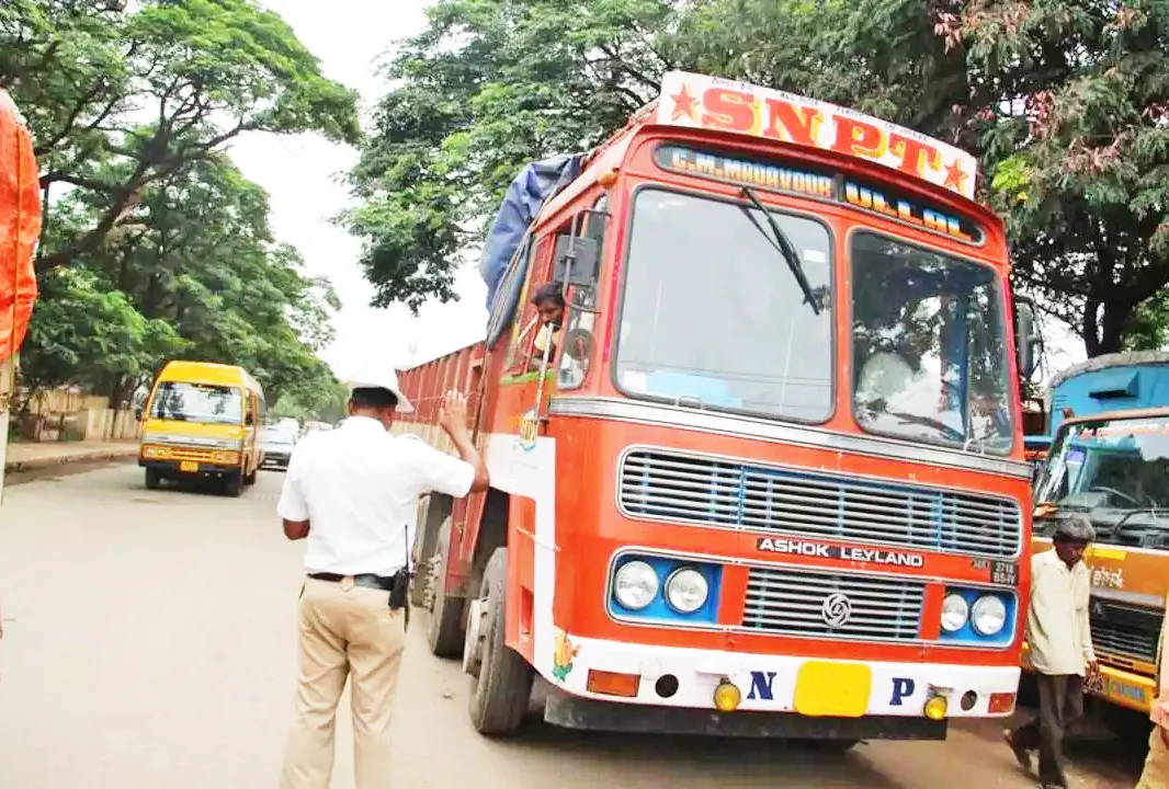 बेळगाव : अवजड वाहनांमुळे शाळकरी मुलांचे बळी जात असल्याने सकाळी 7 ते 11 पर्यंत आणि सायंकाळी 4 ते 8 पर्यंत अवजड वाहनांना शहरात प्रवेशबंदी आहे. तरीदेखील या आदेशाचे उल्लंघन करत शहरात अवजड वाहने प्रवेश करत आहेत. त्यामुळे मंगळवारी दक्षिण रहदारी पोलिसांकडून विविध ठिकाणी थांबून अवजड वाहनांवर दंडात्मक कारवाई करण्यात आली. खानापूर आणि गोव्याहून येणारी अवजड वाहने सुसाट वेगाने शहरात प्रवेश करीत आहेत. त्याचबरोबर पुणे-बेंगळूर राष्ट्रीय महामार्गावरून येणारी वाहनेदेखील चन्नम्मा सर्कल मार्गे शहरात येत आहेत.