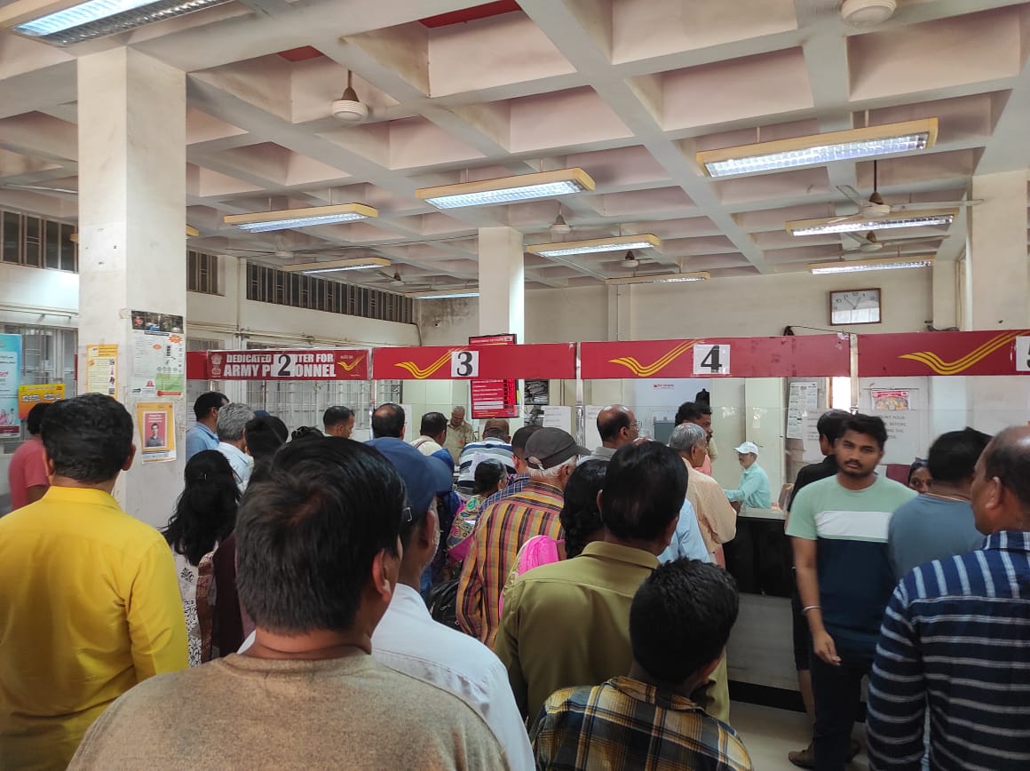 बेळगाव : नवीन आर्थिक वर्षाच्या प्रारंभामुळे पोस्ट कार्यालयाच्या सेवा दोन दिवस ठप्प होत्या. त्यानंतर सर्व्हर डाऊनची समस्या निर्माण झाल्याने सर्व सेवा धीम्या गतीने सुरू होत्या. यामुळे शनिवारी बेळगावच्या मुख्य पोस्ट कार्यालयात ग्राहकांची मोठी गर्दी झाली होती. सर्वच काऊंटरवर रांगा लागल्याने कर्मचाऱ्यांचीही दमछाक झाली. मार्च एंडिंगनंतर 1 एप्रिलपासून नवीन आर्थिक वर्षाला सुरुवात झाली. जुने सर्व व्यवहार बंद करून नवीन व्यवहार सुरू करण्यासाठी पोस्ट कार्यालयाने सोमवारी व मंगळवारी सर्व सेवा बंद ठेवल्या होत्या. तर बुधवारपासून देशात सर्वत्रच सर्व्हर डाऊनची समस्या निर्माण झाली होती. त्यामुळे पोस्ट कार्यालयातील व्यवहार संथगतीने सुरू होते. प्रत्येक महिन्याच्या पहिल्या तारखेपासून पोस्टात आरडी भरण्यासाठी ग्राहकांची मोठी गर्दी होते. परंतु, सर्व्हर नसल्याने ग्राहक माघारी फिरत होते. वेळेत आरडी न भरल्यास दंड आकारला जातो. त्यामुळे शनिवारी आरडी भरण्यासाठी कॅम्प येथील मुख्य पोस्ट कार्यालयात ग्राहकांची गर्दी झाली होती. सोमवार दि. 8 पासूनच्या आठवड्यात सरकारी सुट्या आल्याने केवळ तीनच दिवस पोस्ट कार्यालय सुरू राहणार आहे. त्यामुळे आरडी व इतर व्यवहार करण्यासाठी पोस्ट कार्यालयात गर्दी झाली होती. ग्राहकांची संख्या वाढल्याने कर्मचाऱ्यांची दमछाक झाली. प्रत्येक काऊंटरवर रांगा लागल्याने ग्राहकांनीही संताप व्यक्त केला. विशेषत: ज्येष्ठ नागरिकांना नाहक मन:स्ताप सहन करावा लागला.