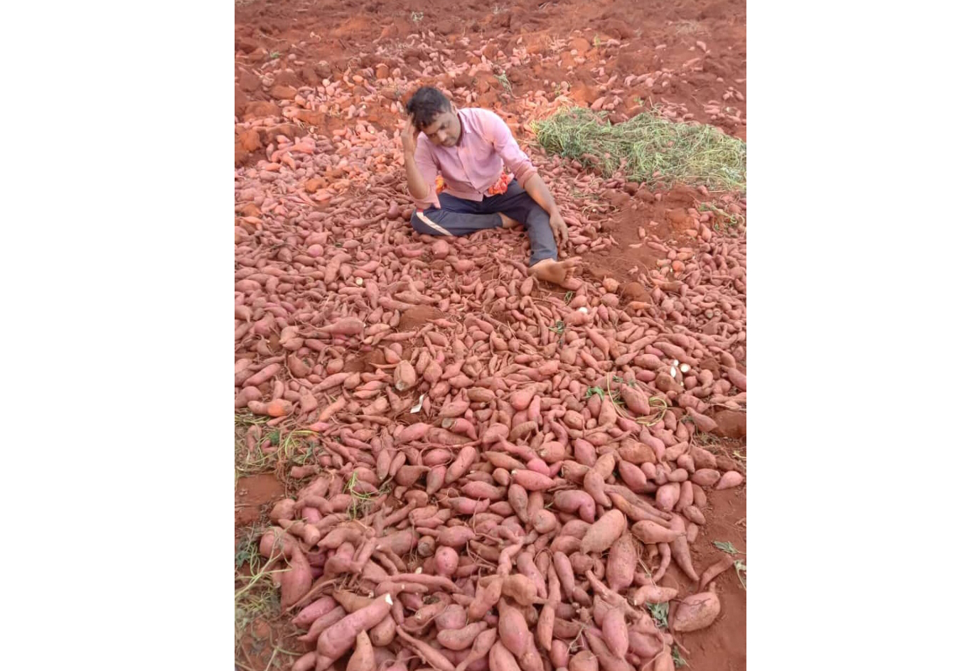 दीड एक क्षेत्रात लागवड केलेली रताळी पूर्णपणे खराब झाली आहेत. त्यामुळे आर्थिक डेंगर कोसळला आहे. किडीने रताळी खराब झाल्याने जागेवरच टाकण्यात आली आहेत. कृषी खाते, बागायत खाते आणि लोकप्रतिनिधींनी पाहणी करून नुकसानभरपाई द्यावी आणि कुटुंबीयांना दिलासा द्यावा.