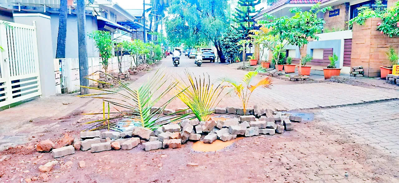 हिंदवाडी परिसरातील घालण्यात आलेले पेव्हर्स खराब झाल्याने अनेक वर्षांच्या मागणीनंतर रस्त्याची दुरुस्ती करण्यात आली. नवीन पेव्हर्स घालून रस्ता व्यवस्थित केला पण काही दिवसातच जलवाहिन्या घालण्यासाठी रस्त्याची खोदाई झाल्याने पुन्हा रस्ता खराब झाला आहे. ठिकठिकाणी खड्डे पडले असून दुरुस्ती करण्यात आली नसल्याने यामध्ये नागरिकांनी रोपे लावली आहेत.