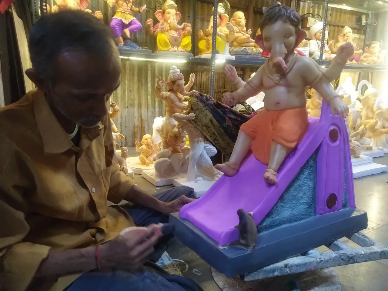 पावसाने दिलेल्या उसंतमुळे कामाचा वेग आला आहे. ग्राहकांच्या मागणीप्रमाणे सुबक व दर्जेदार मूर्तीं घडविल्या जात आहेत. पीओपीवरील निर्णय उशिरा झाल्यामुळे मूर्तींच्या कामाला थोडा विलंब झाला आहे. मूर्ती वेळेत करण्यासाठी रात्री उशिरापर्यंत काम करावे लागत आहे.