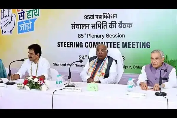 छत्तीसगडमधील रायपूर येथे शुक्रवारपासून काँग्रेसचे 85 वे राष्ट्रीय अधिवेशन सुरू झाले. या अधिवेशनाच्या पहिल्या दिवशीच सुकाणू समितीच्या बैठकीत पक्षाच्या कार्यकारिणी समिती (सीडब्ल्यूसी) निवडणुका न घेण्याचा निर्णय सर्वानुमते मंजूर करण्यात आले. या निर्णयामुळे आता काँग्रेस अध्यक्ष मल्लिकार्जुन खर्गे यांना सदस्य नामनिर्देशित किंवा नियुक्त करण्याचे अधिकार देण्यात आले आहेत. आणखी दोन दिवस हे अधिवेशन चालणार असून पहिल्या दिवशी विषय समितीची बैठकही पार पडली. तसेच काँग्रेस पक्षाच्या घटनेतील दुरुस्तीवरही अधिवेशनात चर्चा होणार आहे.